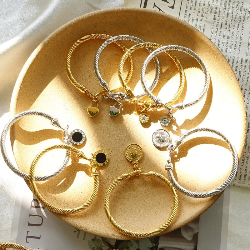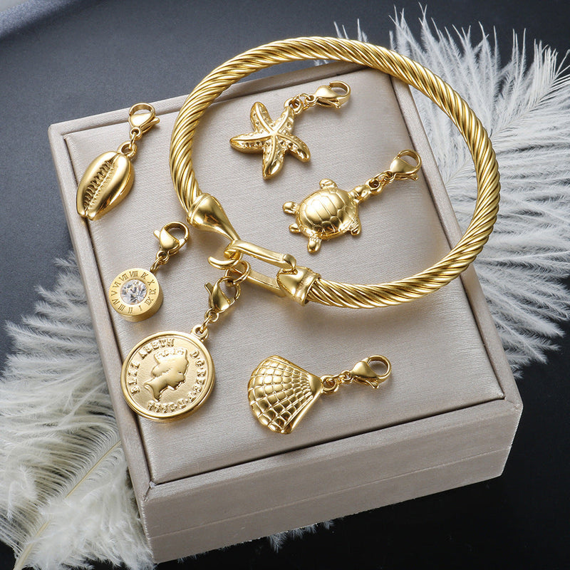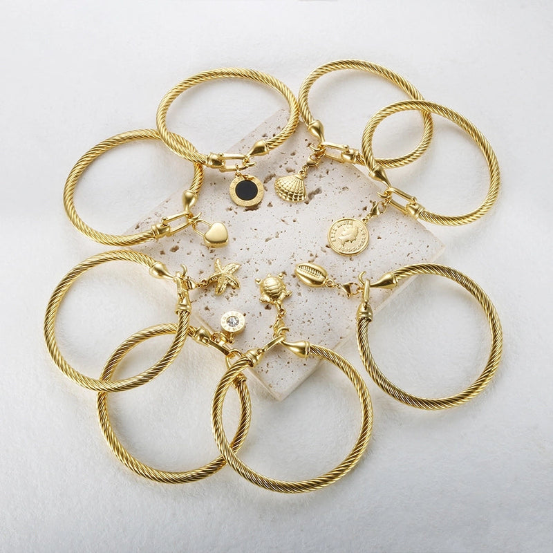 Marine Style Starfish Heart Shape Shell Titanium Steel Bangle In Bulk