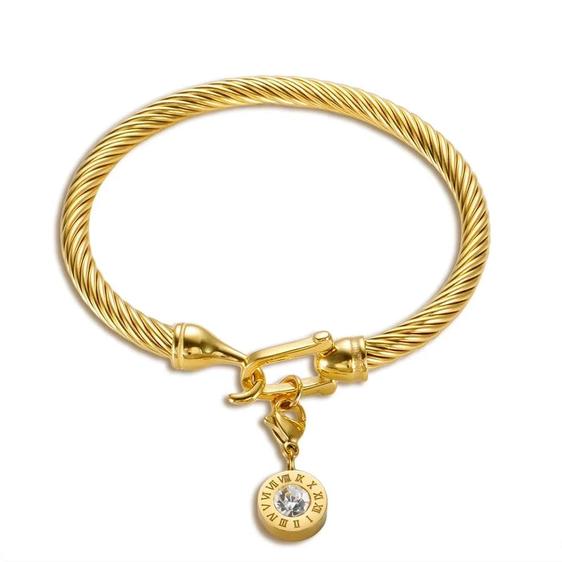 Gold Steel Wire Hanging Small Peach Heart Bracelet
