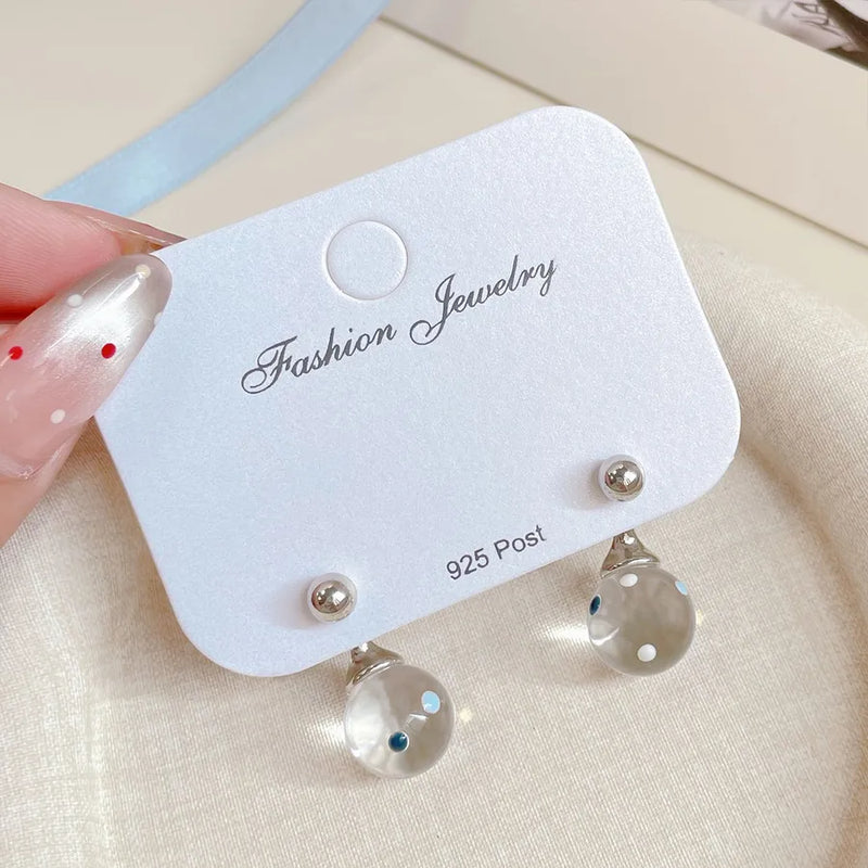 New Blue Polka Dot Ball Earrings Women's Silver Needle Exquisite Design Sense Small Fresh Ins Style Simple Resin Earrings