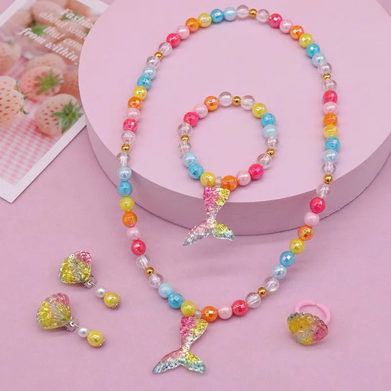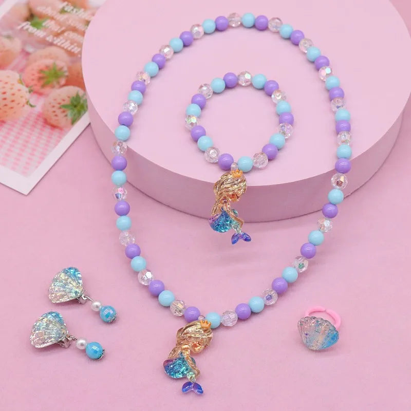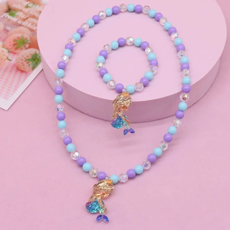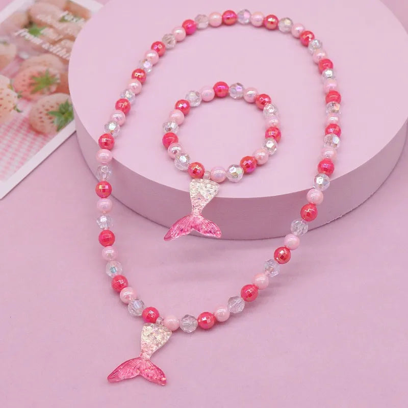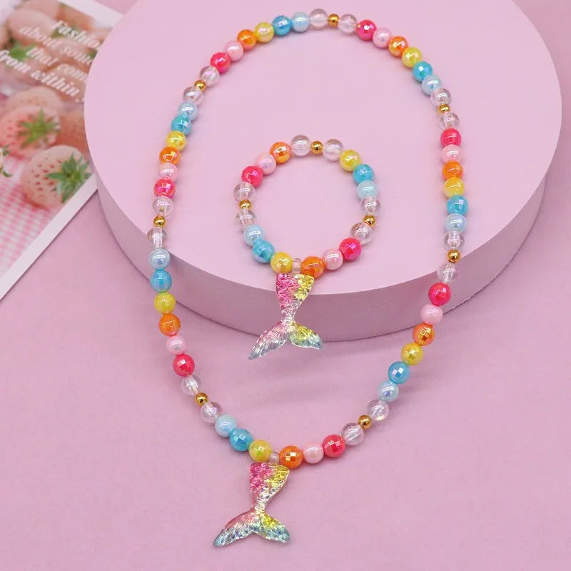 New Children's Necklace Girl Butterfly Fishtail Jewelry suit Cute Cartoon Necklace Girl Baby's Necklace