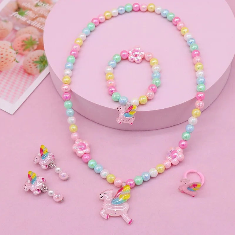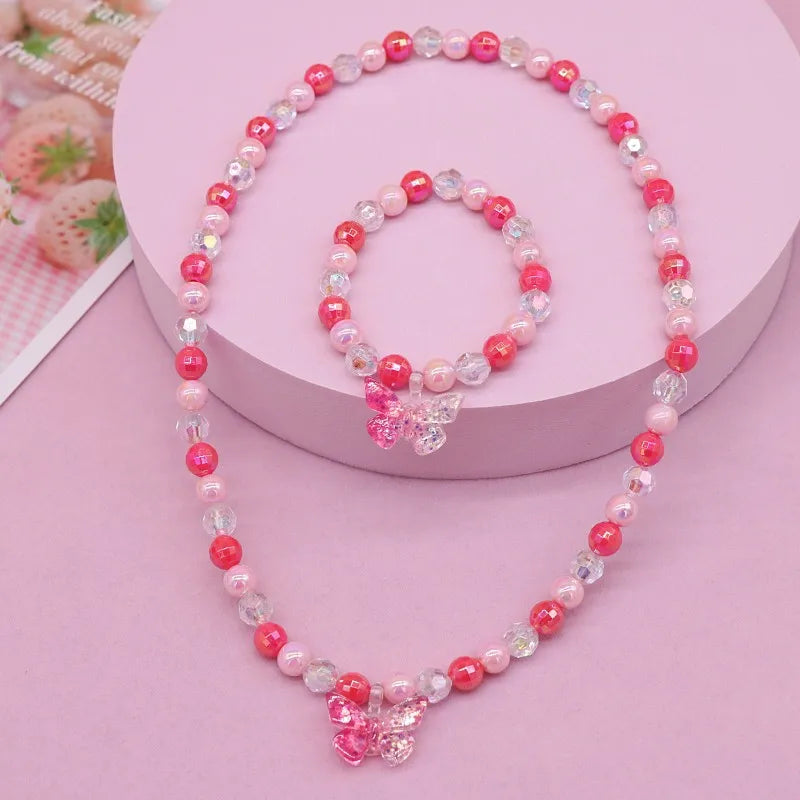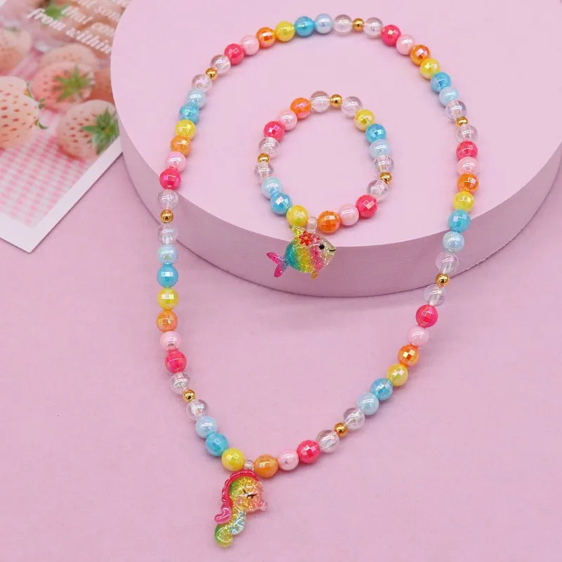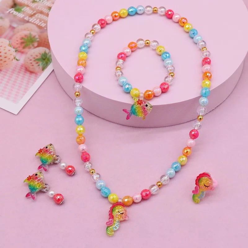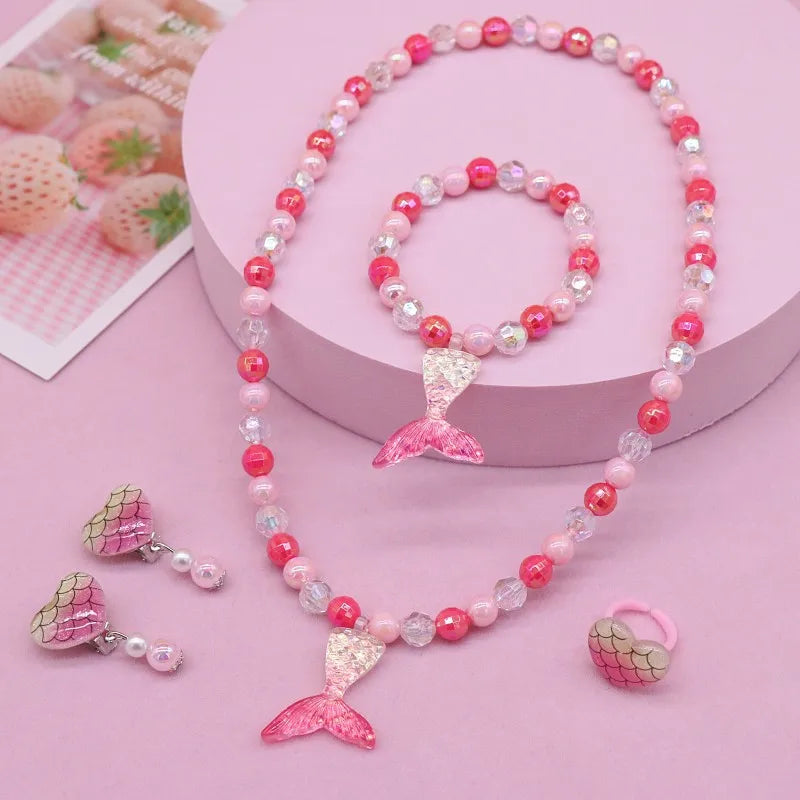 New Children's Necklace Girl Butterfly Fishtail Jewelry suit Cute Cartoon Necklace Girl Baby's Necklace