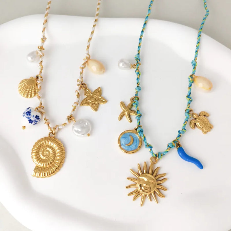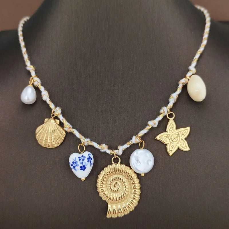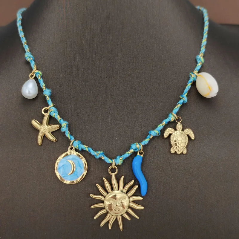 New Conch Starfish Ocean Beach Style DIY Stainless Steel Pendant Necklace Multi-Element Rope Summer Jewelry
