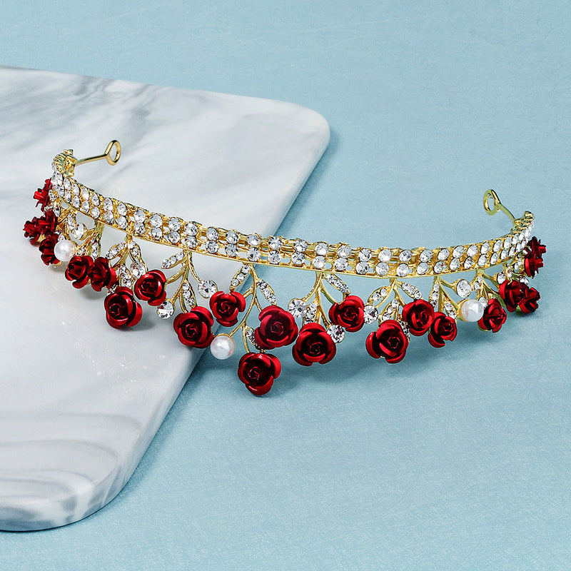 new wedding jewelry baroque red rose diamond crown
