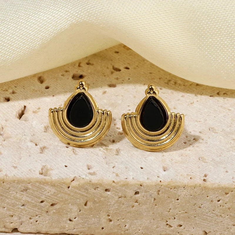 One Pack and Two Pairs Retro French Style Geometric Plating Titanium Steel Natural Stone 14K Gold Plated Ear Studs