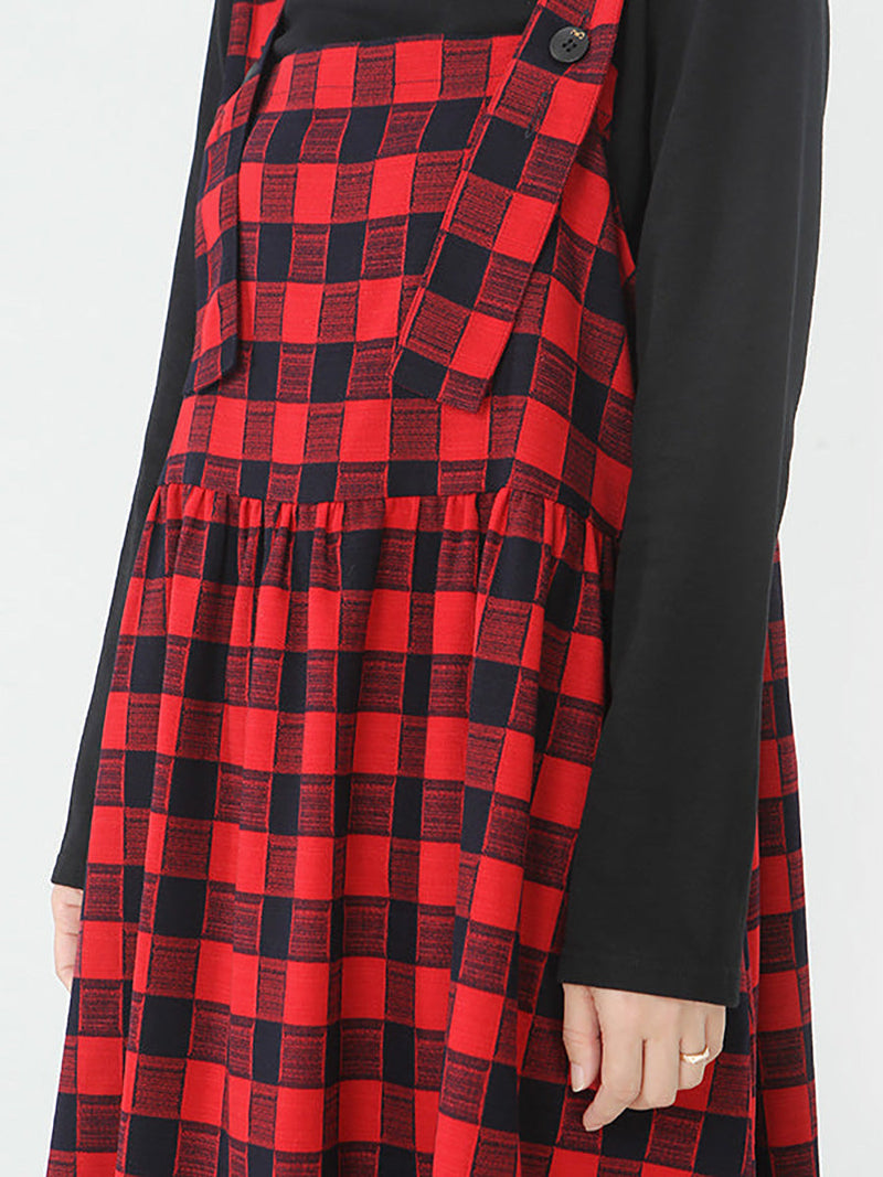 Plus Size - Cotton Women Top and Plaid Pinafore Dress