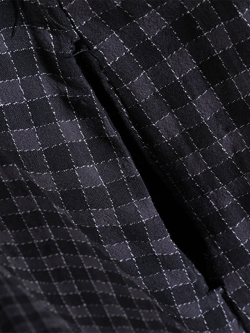 This dress is crafted from a blend of 100% cotton. making it a durable and comfortable choice. It features a classic plaid pattern. a turn-down collar. and short sleeves with a vintage-inspired regular fit. Ideal for both spring and summer seasons.