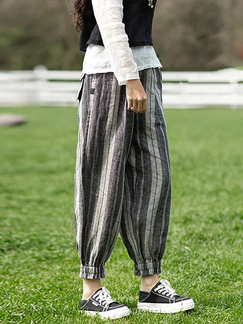 The 100%Linen fabric is lightweight and breathable. perfect for warm weather. The elastic waist and ankle length design make for a comfortable. easy fit.