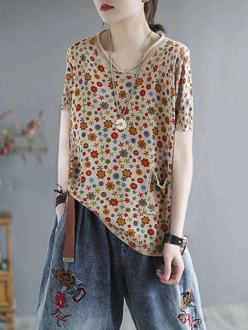 This shirt is made with a blend of 55% cotton and 45% acrylic. providing both comfort and durability. The intricate floral pattern adds a touch of elegance to the design. while the O-neck collar and short sleeves make it perfect for the warmer seasons of spring and summer. With regular sleeves and an artsy style. this shirt is a must-have for any plus size woman looking for a casual yet stylish summer look.