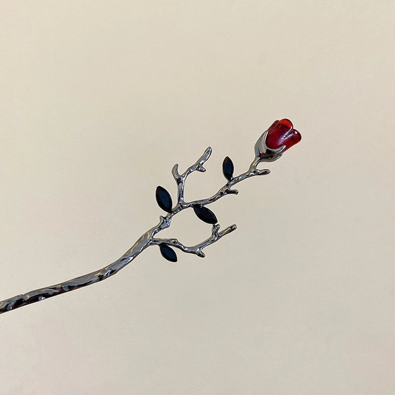 16 Hairpin-Red Diamond Embedded Rose