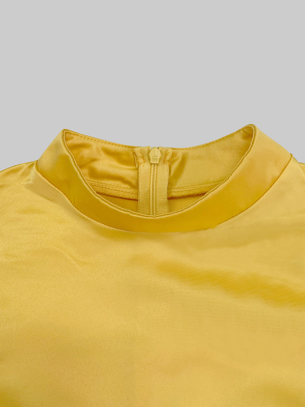 Short Sleeves Pockets Solid Color Split-Joint Round-Neck Maxi Dresses