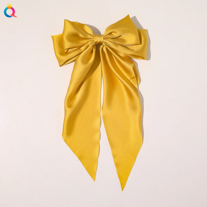 Satin Bow Ribbon Hairpin-Bright Yellow