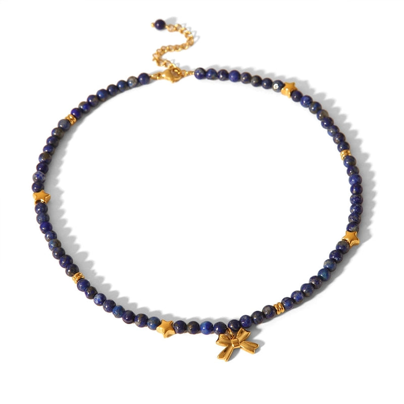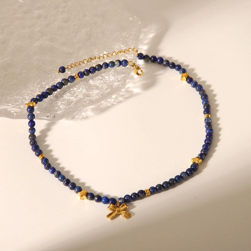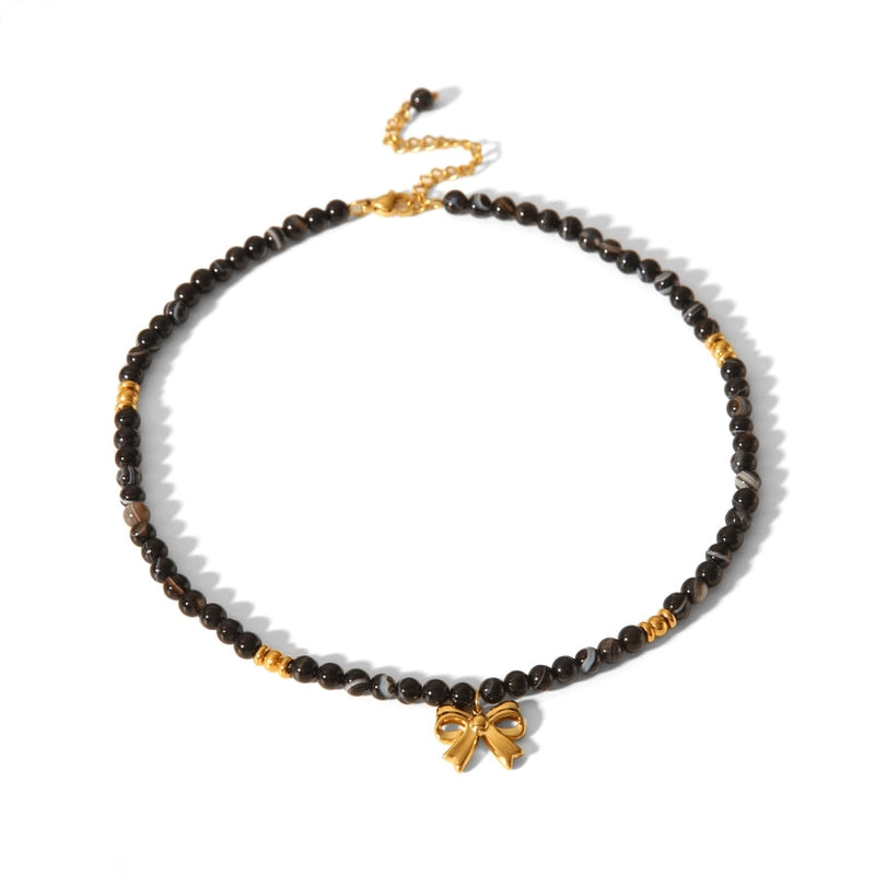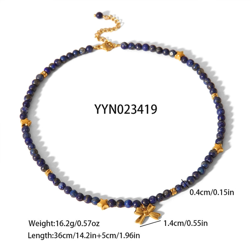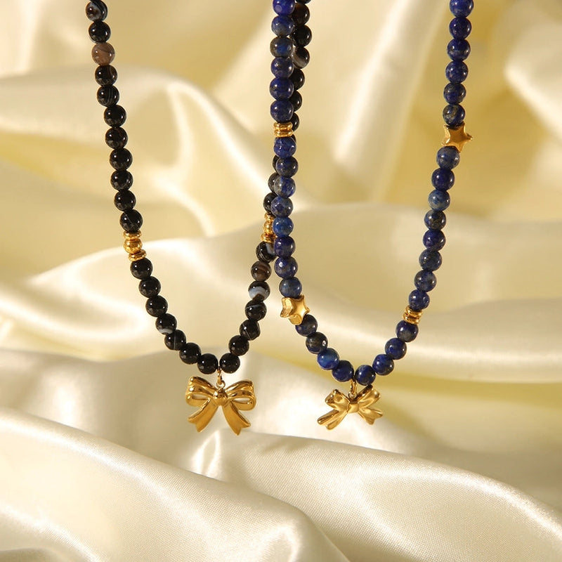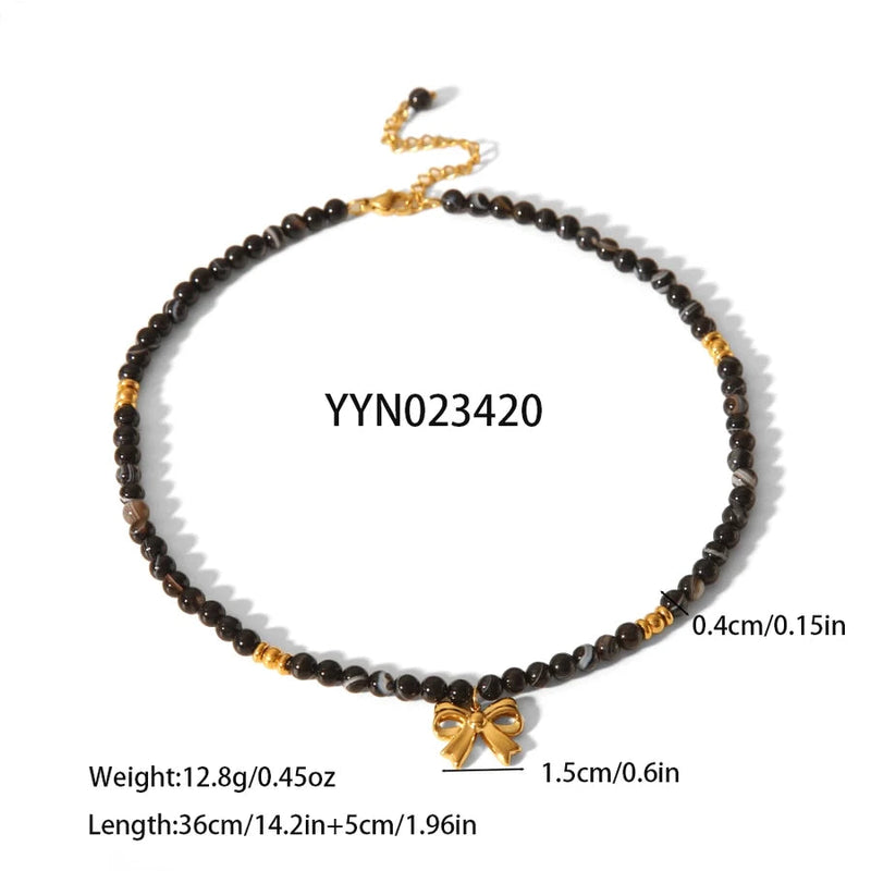 Simple Style Classic Style Bow Knot 304 Stainless Steel natural stone 18K Gold Plated Pendant Necklace In Bulk