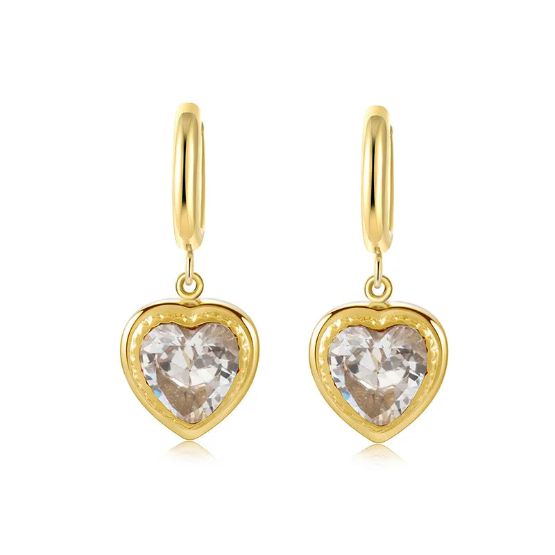 Simple Style Heart Plating Stainless Steel Glass Stone 18K Gold Plated Earrings