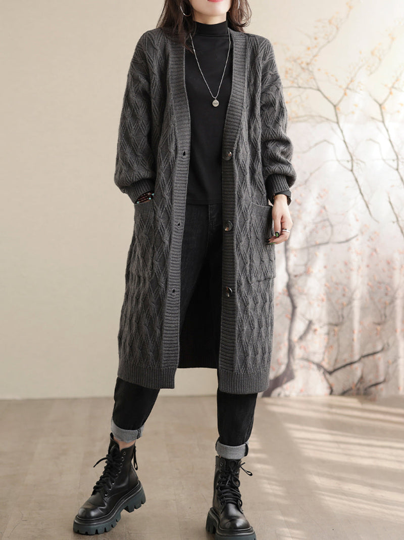 This solid loose casual mid-length women's coat is crafted from a soft. comfortable fabric. The winter coat features a V neckline and full sleeves to protect the body from the cold in windy weather. The single-breasted buttons are easy to put on.