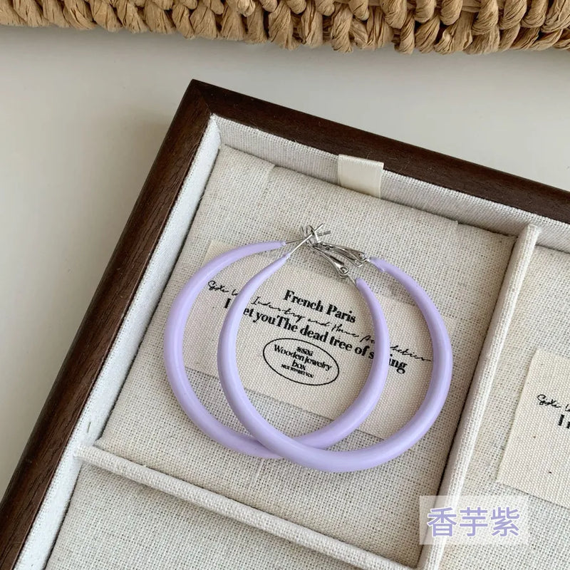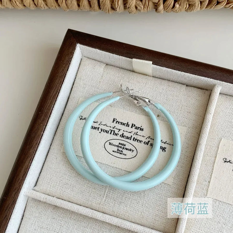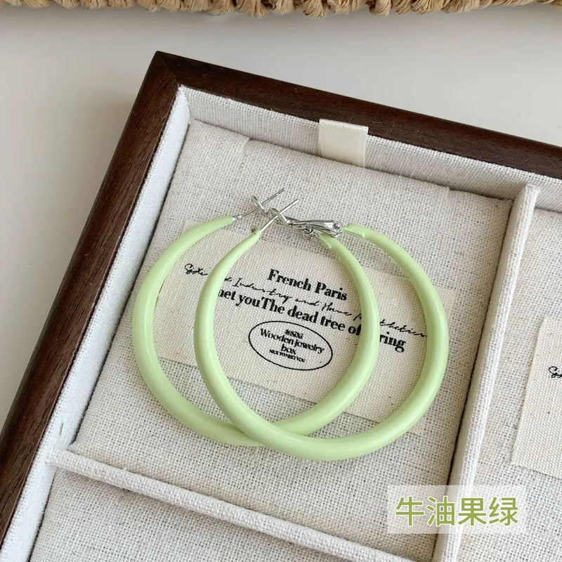 Spring and summer cream big circle earrings design niche female silver needle oil drop geometric Macaron high-grade all-match earrings