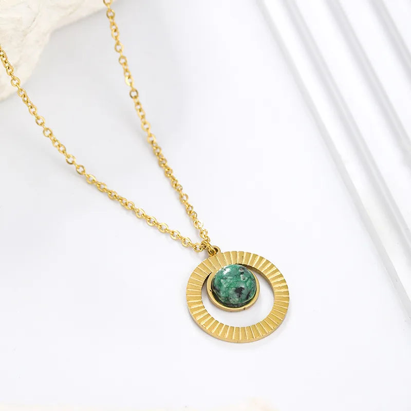 Stainless Steel Elegant Simple Style Plating Inlay Solid Color Natural Stone Pendant Necklace