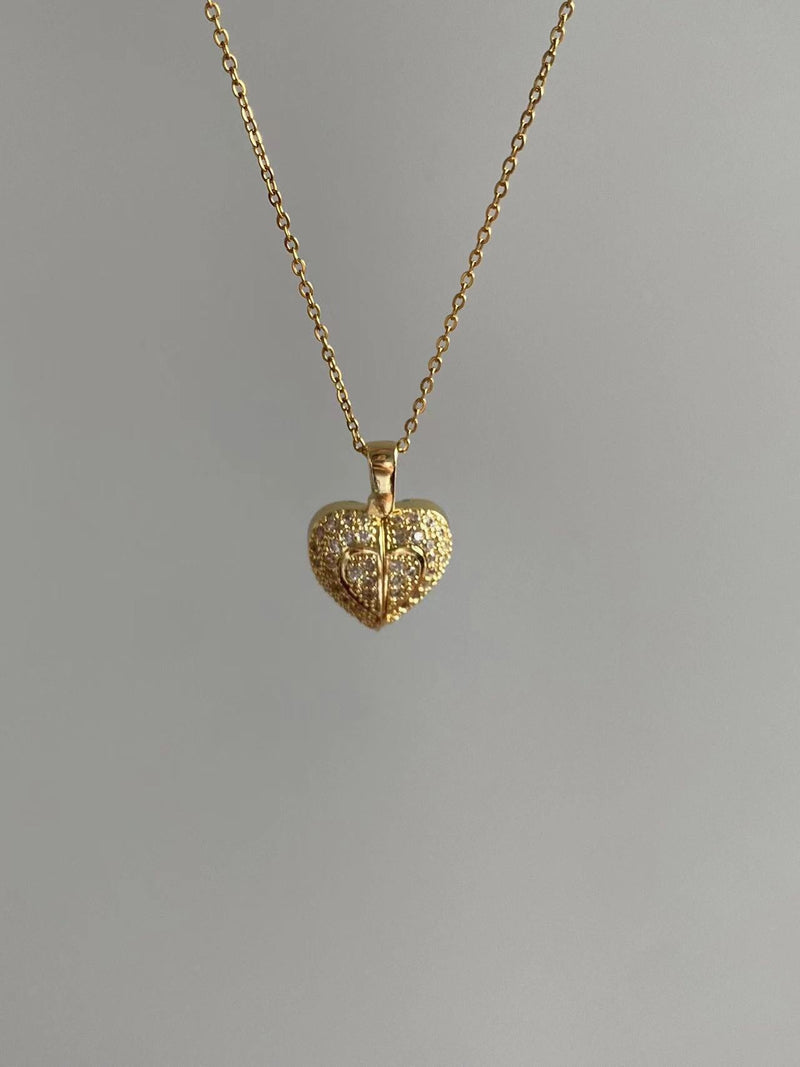 Titanium Steel Copper Plating Heart Shape Zircon Pendant Necklace