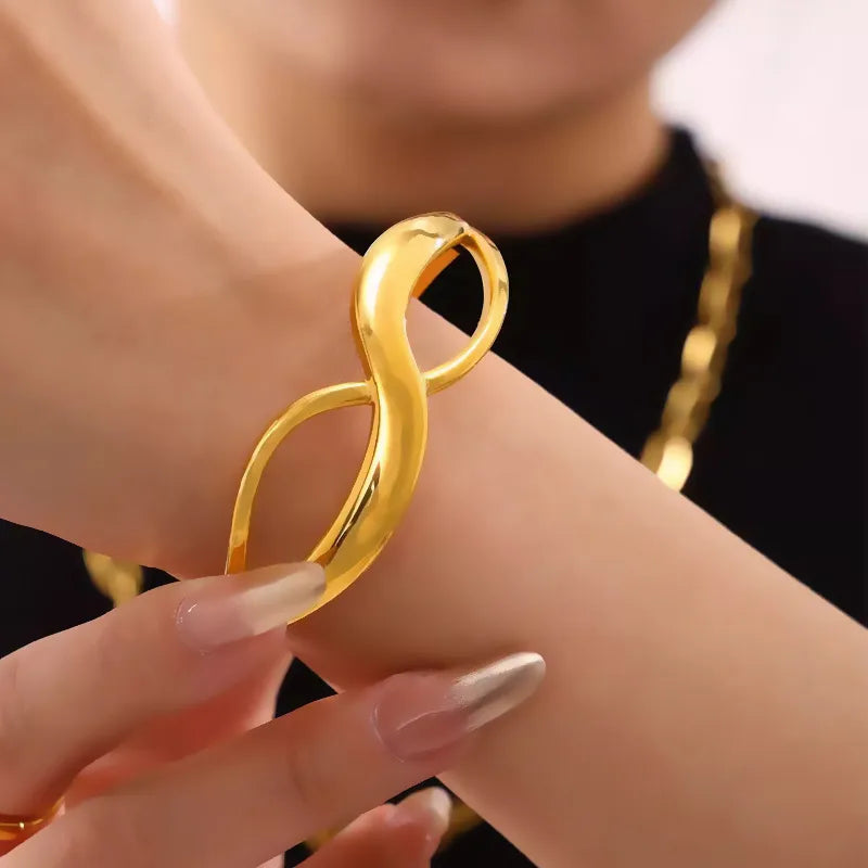 Vacation Classic Style Solid Color Titanium Steel 18K Gold Plated Bangle In Bulk