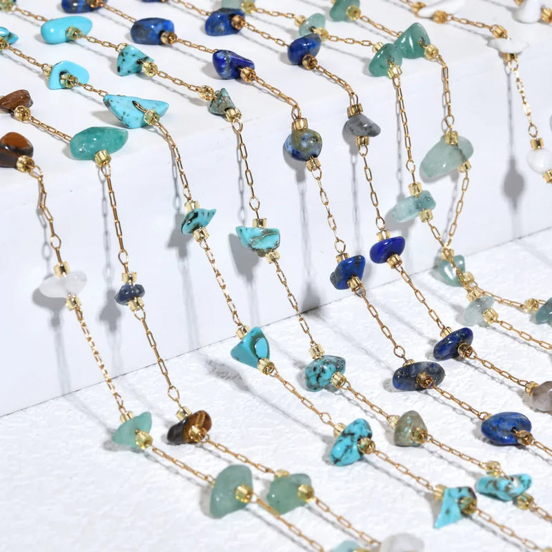Vintage Style Classic Style Geometric 304 Stainless Steel natural stone gravel cable chain Necklace In Bulk