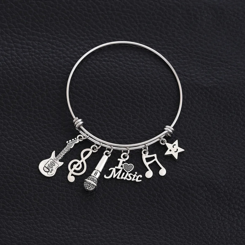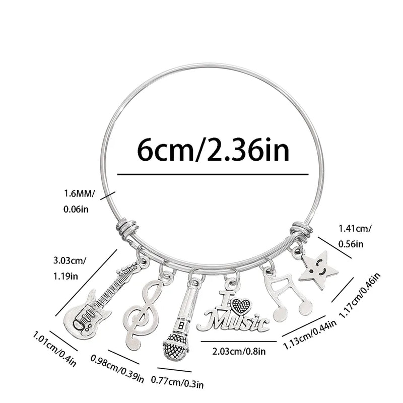 Vintage Style Modern Style Guitar Star Microphone 304 Stainless Steel Alloy Stretch Adjustable Bangles Wholesale