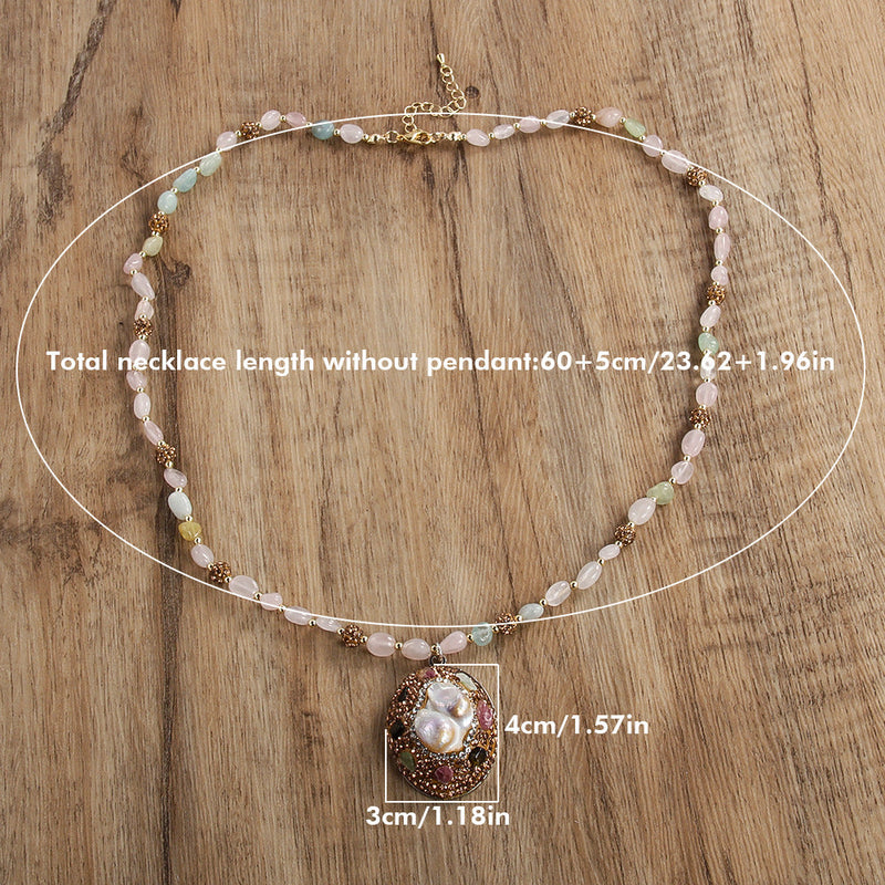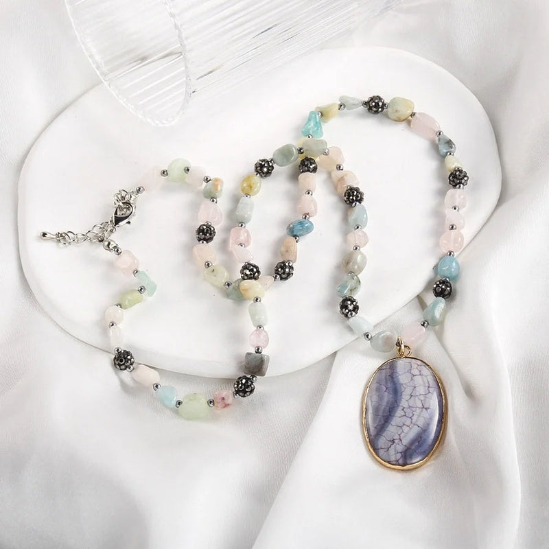 Vintage Style Vacation Geometric natural stone Beaded Chain Pendant Necklace In Bulk