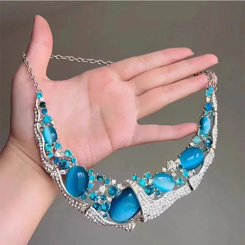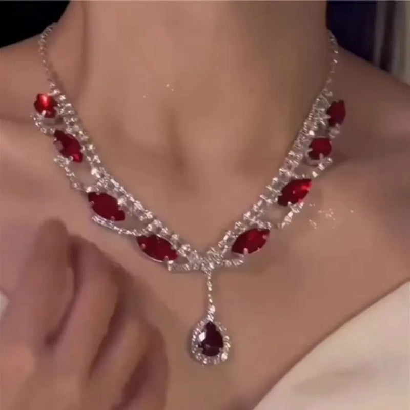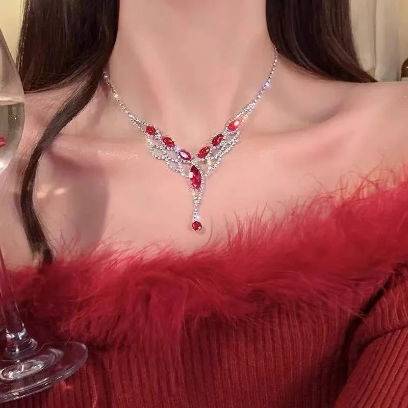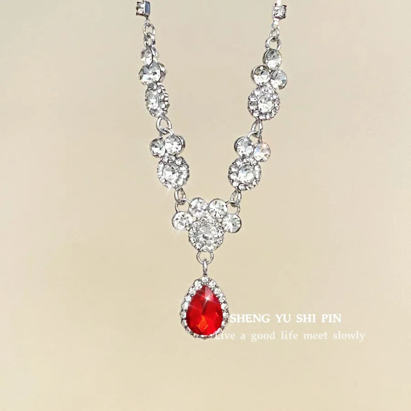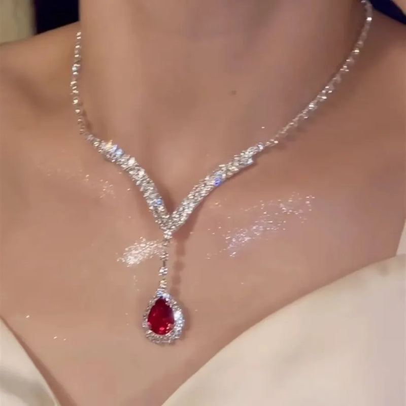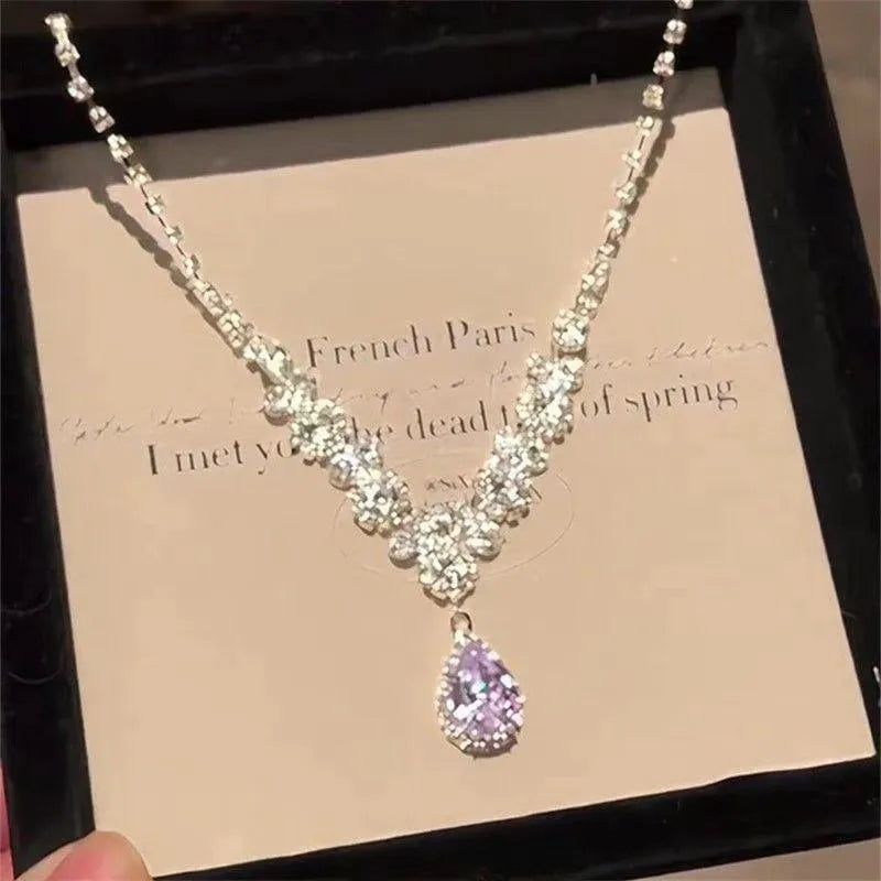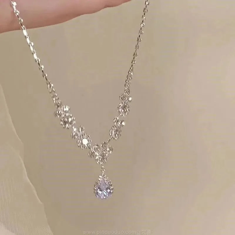 White Moonlight ~ Super Flash Zircon Water Drop Pendant Necklace Minority Fashion High Sense Temperament Wild Clavicle Chain Jewelry