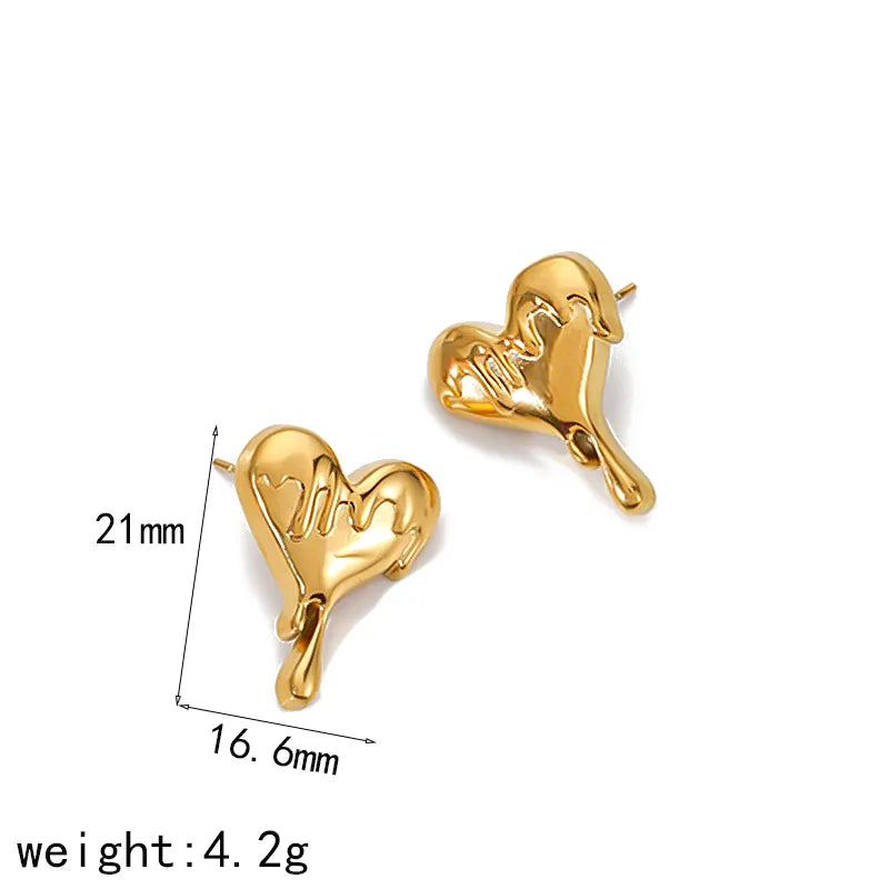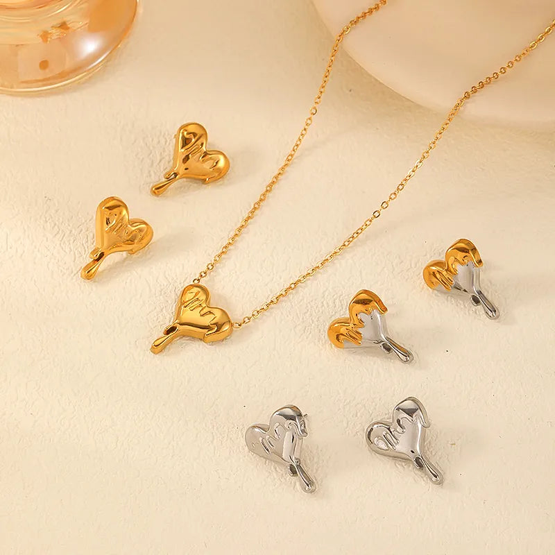 Wholesale Jewelry Artistic IG Style Heart Shape 304 Stainless Steel 18K Gold Plated Plating Earrings Necklace