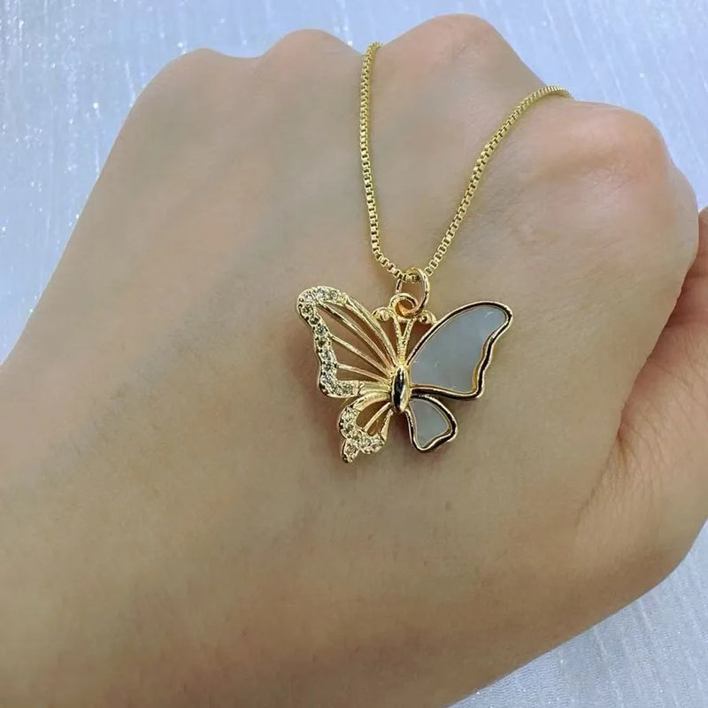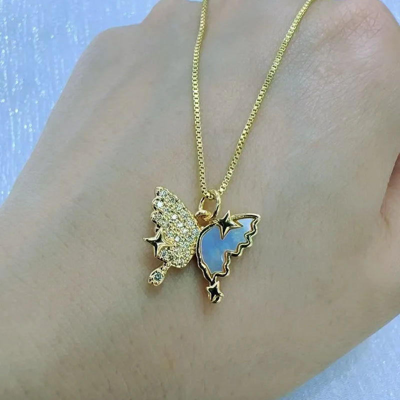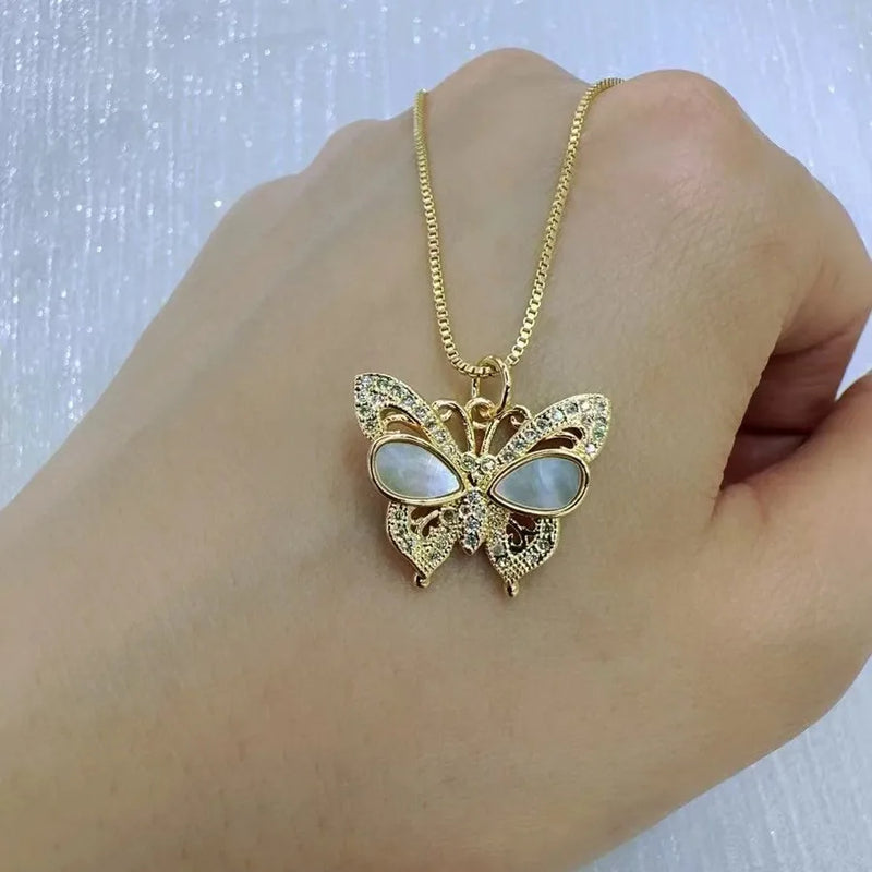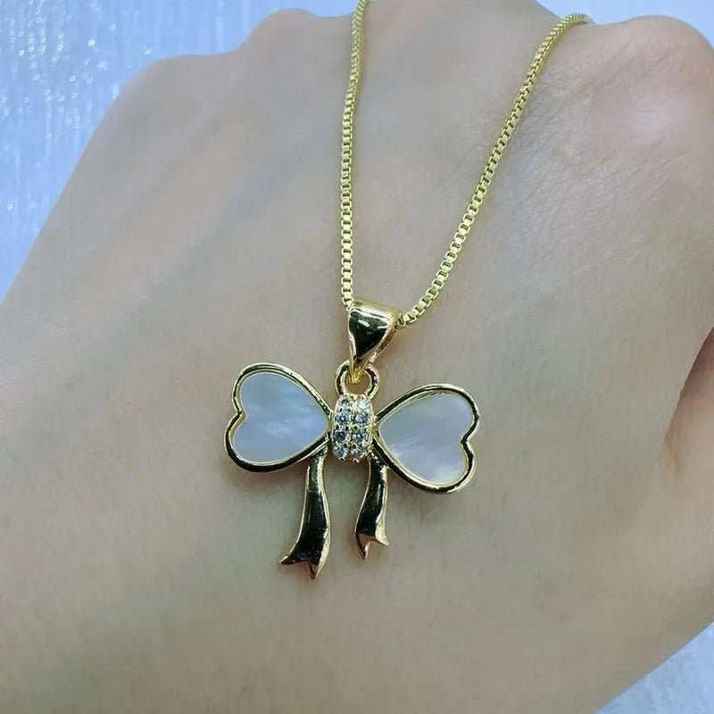Wholesale Jewelry Casual Classic Style Artistic Animal Butterfly Bow Knot Copper Acrylic Zircon 18K Gold Plated Inlay box chain Pendant Necklace