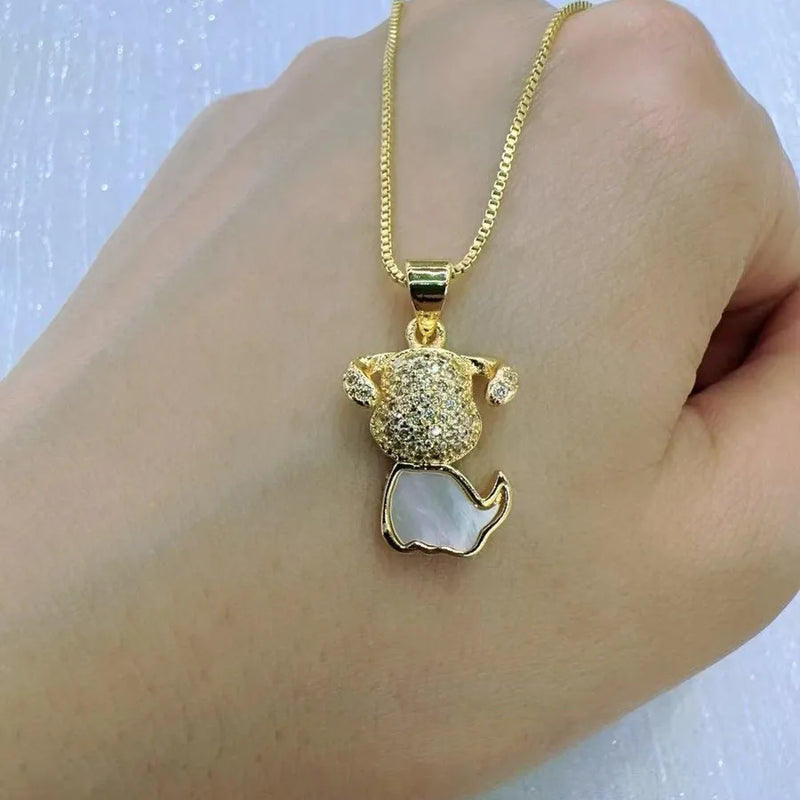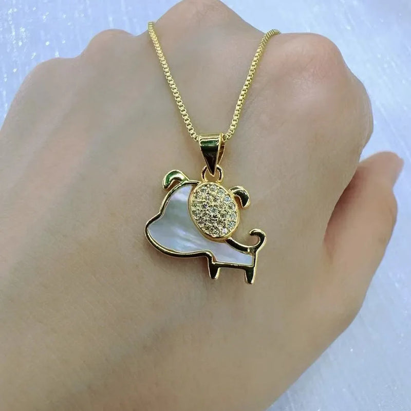 Wholesale Jewelry Casual Classic Style Artistic Animal Dog Copper Acrylic Zircon 18K Gold Plated Inlay box chain Pendant Necklace