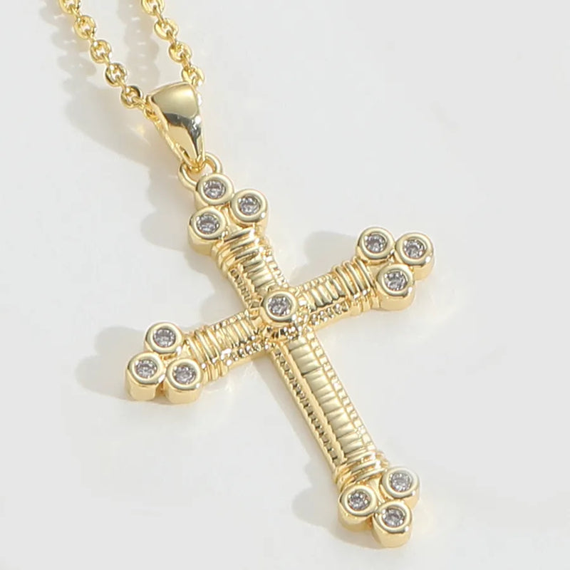 Wholesale Jewelry Casual Classic Style Cross Copper Resin 14K Gold Plated Inlay O-shaped chain Pendant Necklace