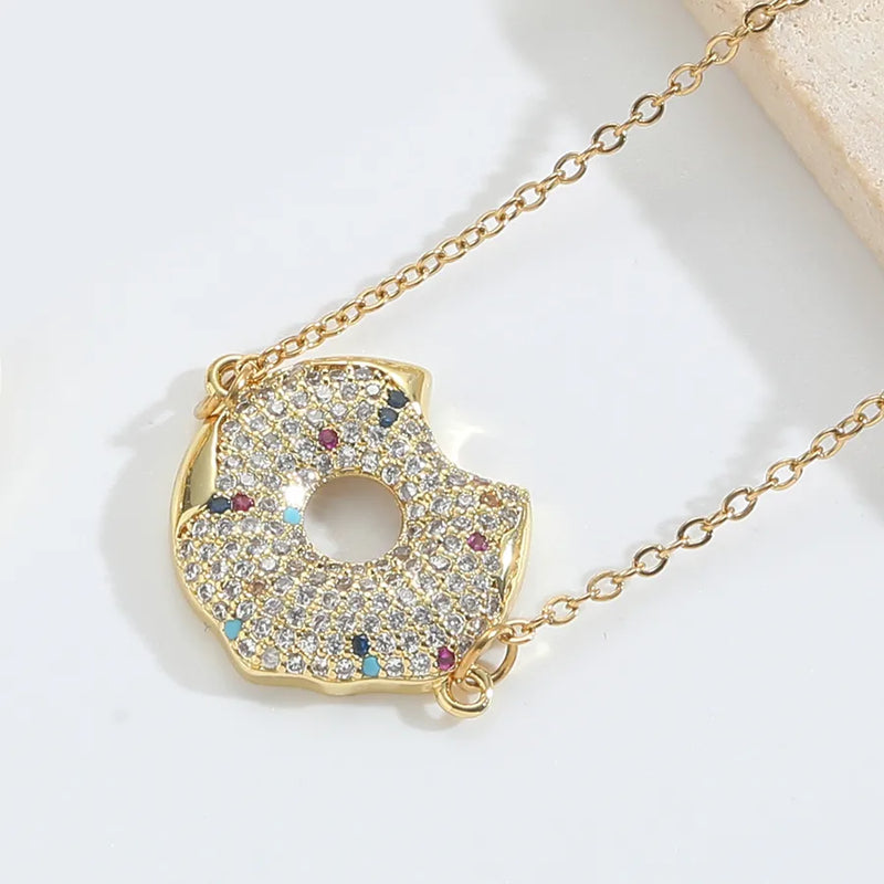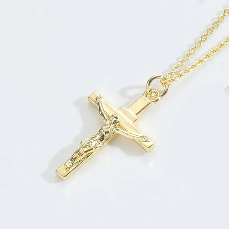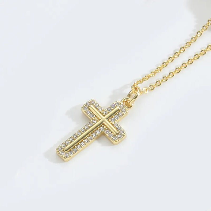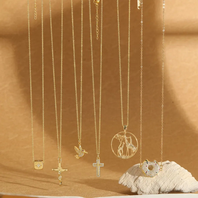 Wholesale Jewelry Casual Classic Style Cross Copper Zircon 14K Gold Plated Inlay O-shaped chain Pendant Necklace