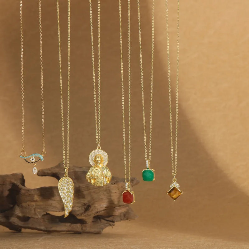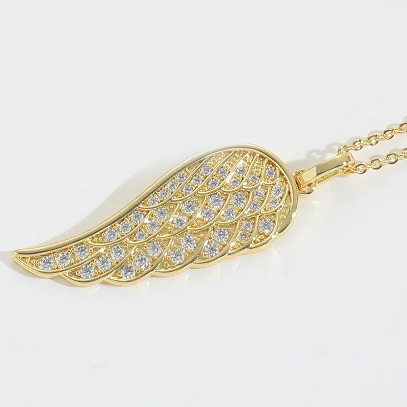 Wholesale Jewelry Casual Classic Style Eye Wings Copper Zircon 14K Gold Plated Inlay O-shaped chain Pendant Necklace