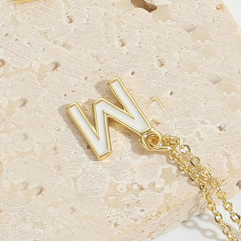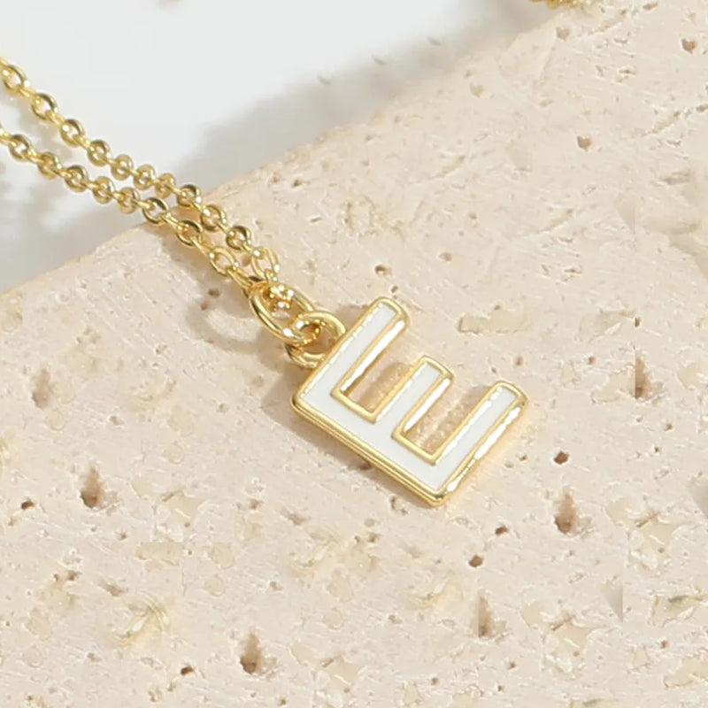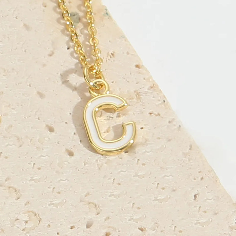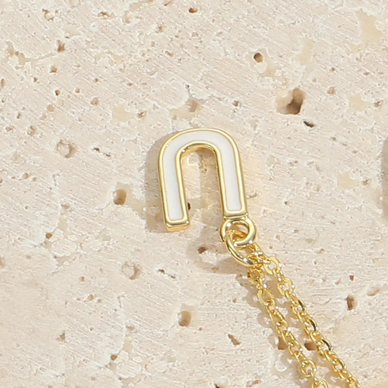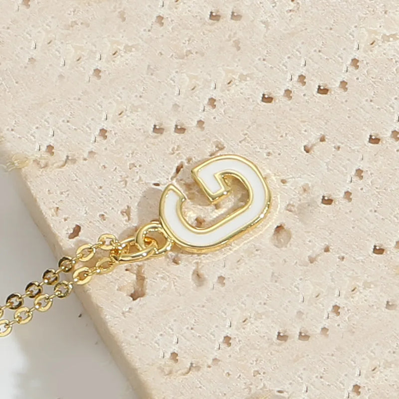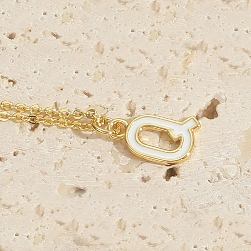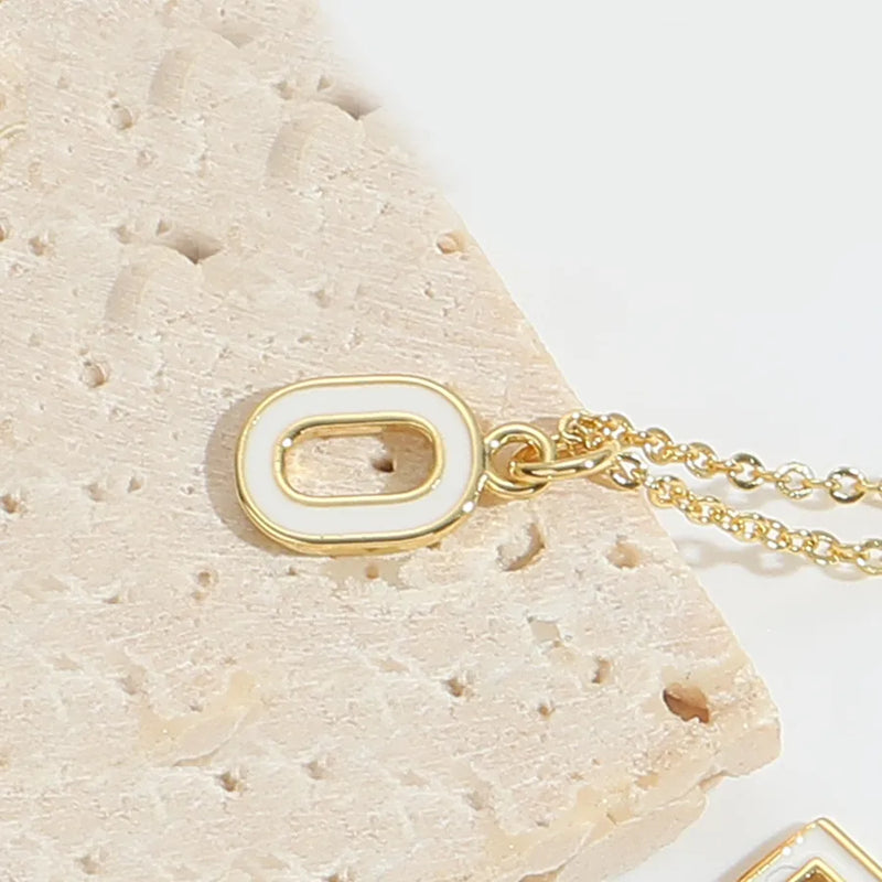 Wholesale Jewelry Casual Classic Style Letter Copper 14K Gold Plated Enamel O-shaped chain Pendant Necklace