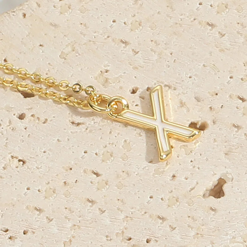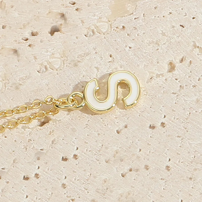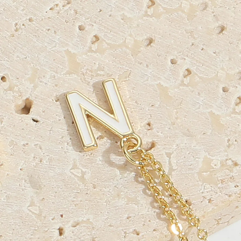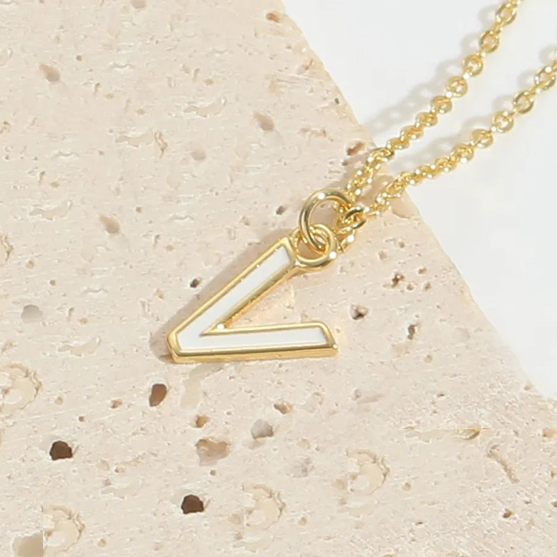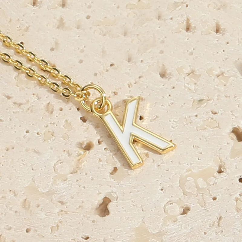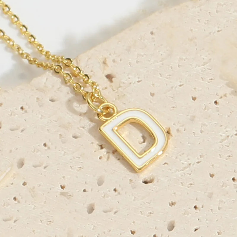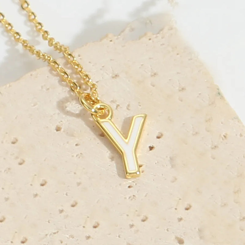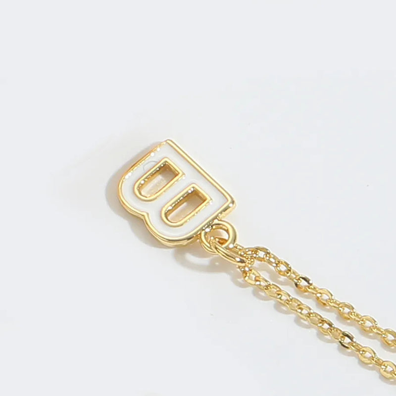 Wholesale Jewelry Casual Classic Style Letter Copper 14K Gold Plated Enamel O-shaped chain Pendant Necklace