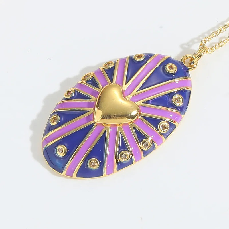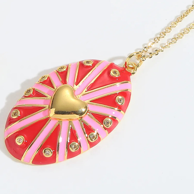 Wholesale Jewelry Casual Classic Style Oval Copper Zircon 14K Gold Plated Inlay O-shaped chain Pendant Necklace