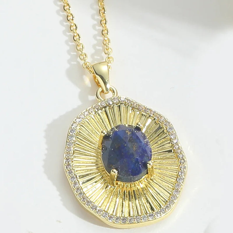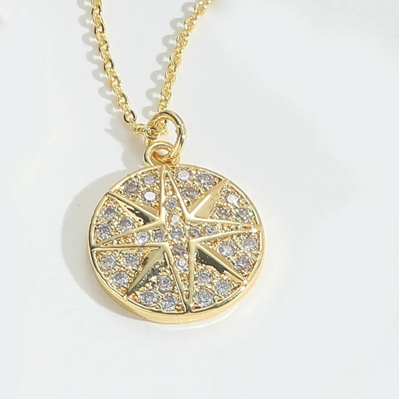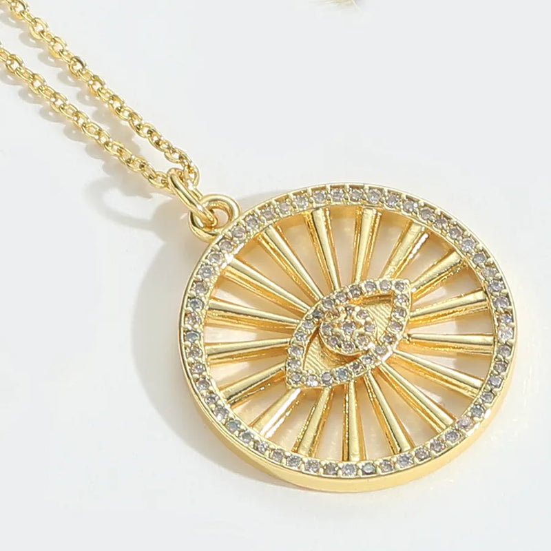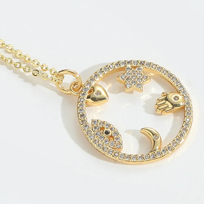 Wholesale Jewelry Casual Classic Style Round Copper Zircon 14K Gold Plated Inlay O-shaped chain Pendant Necklace