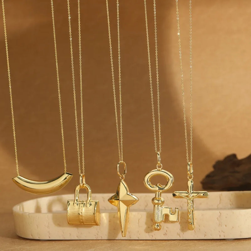 Wholesale Jewelry Casual Classic Style V Shape Copper 14K Gold Plated O-shaped chain Pendant Necklace