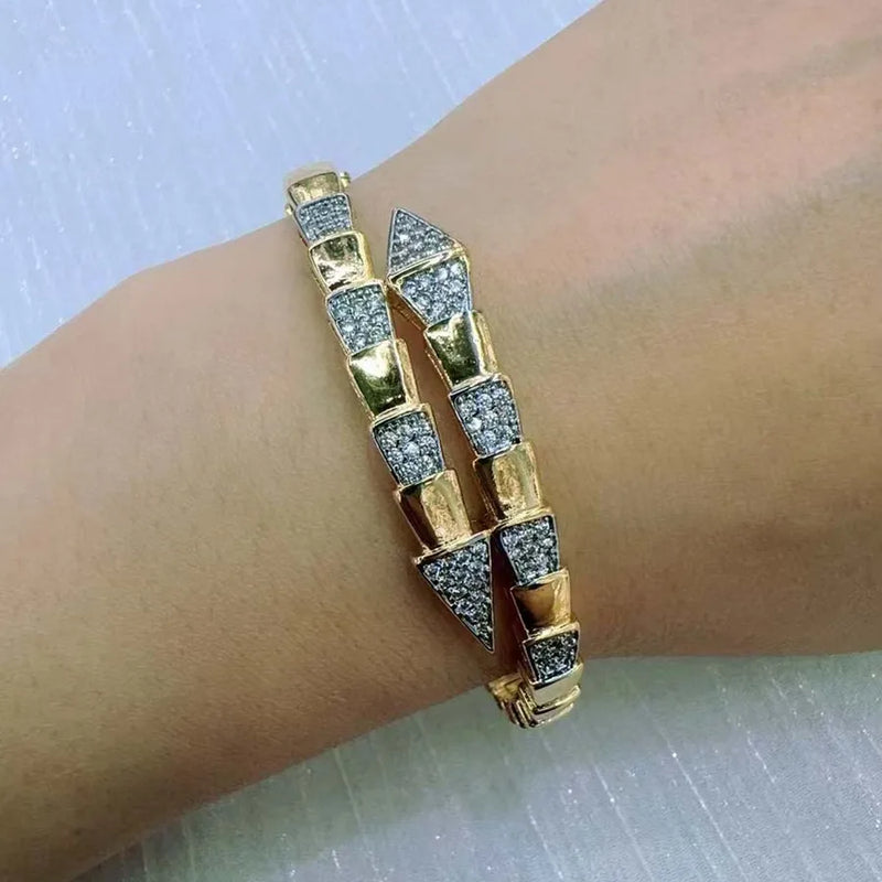 Wholesale Jewelry Casual Commute Shiny Triangle Geometric Copper Zircon 18K Gold Plated Inlay Bangle