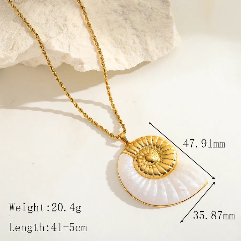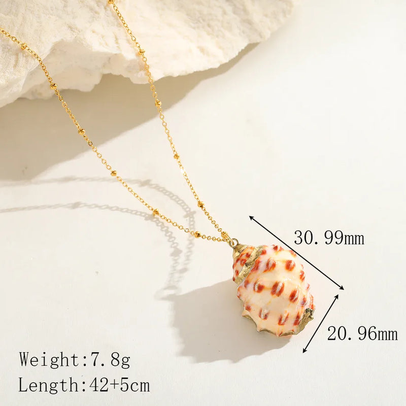 Wholesale Jewelry Casual Cute Beach Conch 304 Stainless Steel Acrylic 18K Gold Plated Plating Inlay cable chain Hemp flowers chain Pendant Necklace Multi Charms Necklace