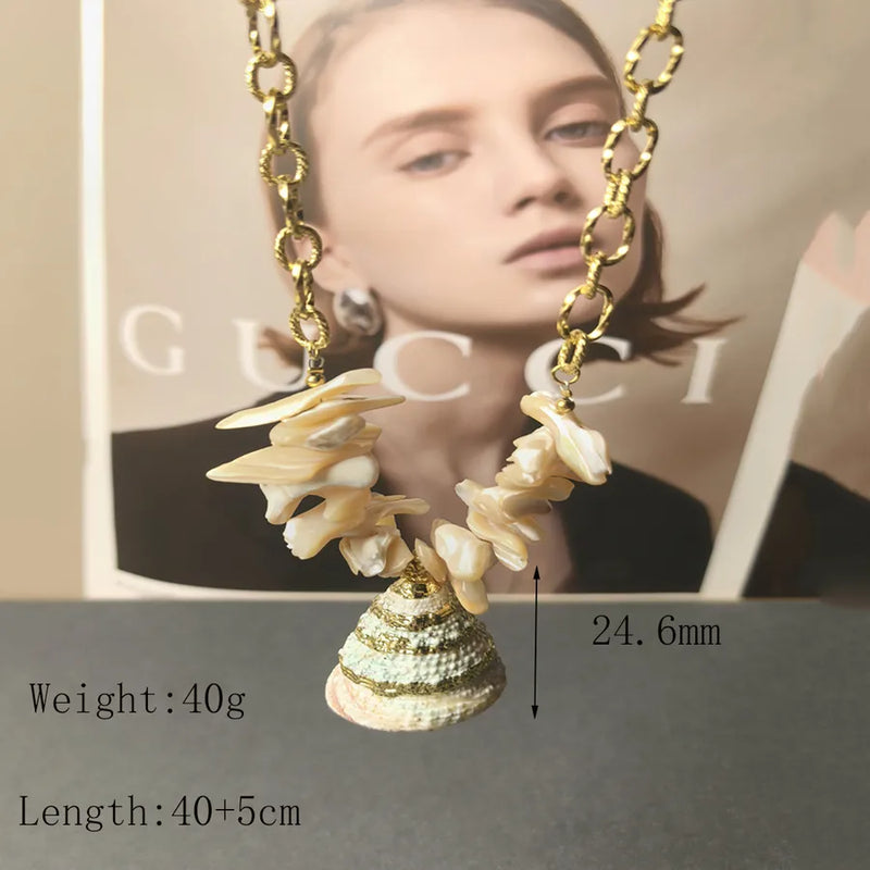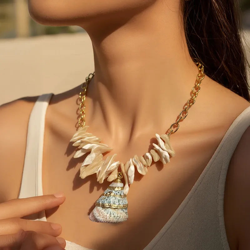 Wholesale Jewelry Casual Cute Beach Conch 304 Stainless Steel Acrylic 18K Gold Plated Plating Inlay cable chain Pendant Necklace