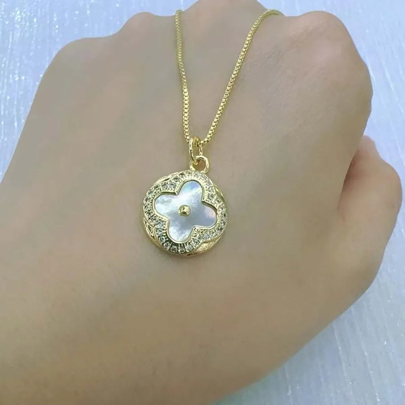 Wholesale Jewelry Casual Cute Simple Style Four Leaf Clover Copper Acrylic Zircon 18K Gold Plated Inlay box chain Pendant Necklace