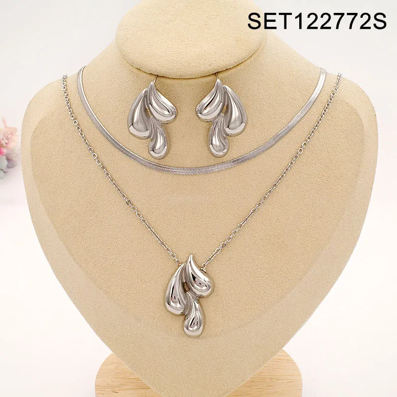 Wholesale Jewelry Casual Elegant Cute Water Droplets Solid Color 304 Stainless Steel Zircon 18K Gold Plated Plating cable chain snake chain Jewelry Set