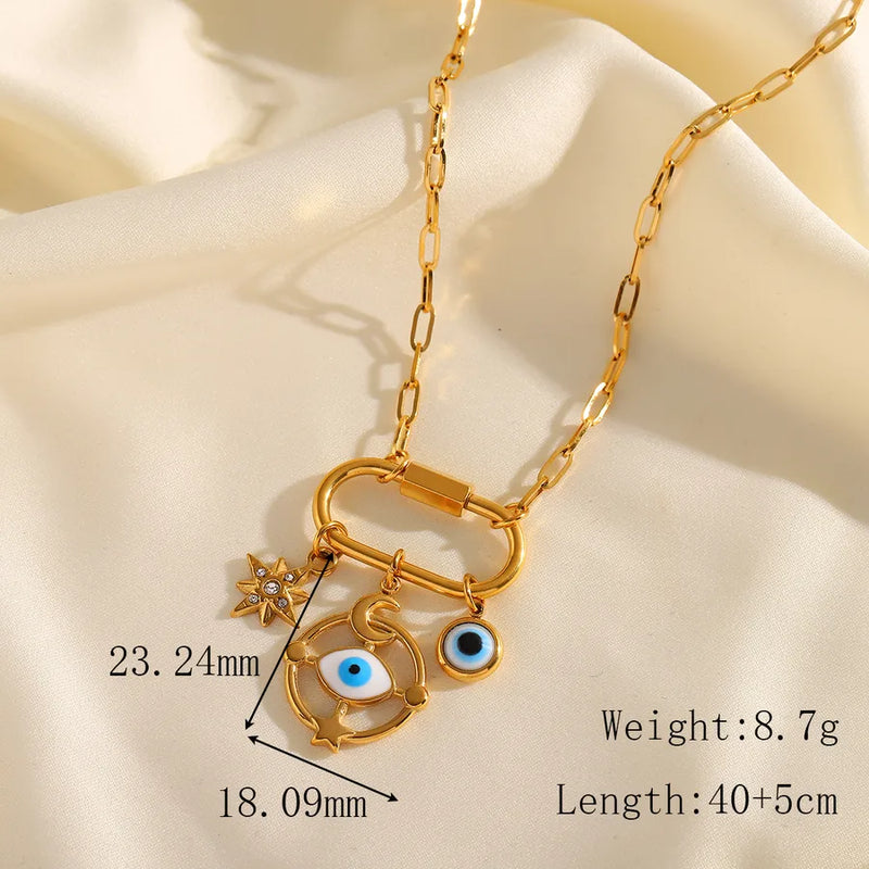 Wholesale Jewelry Casual Elegant Funny Star 304 Stainless Steel Zircon 18K Gold Plated Plating Inlay Paperclip Chain Multi Charms Necklace