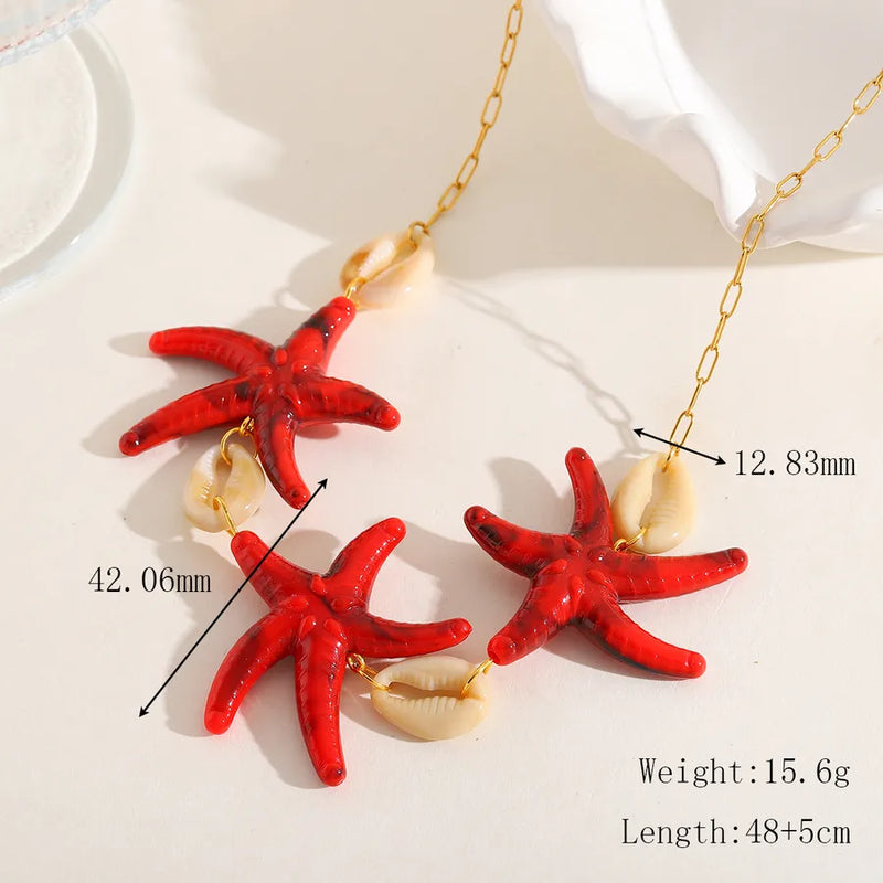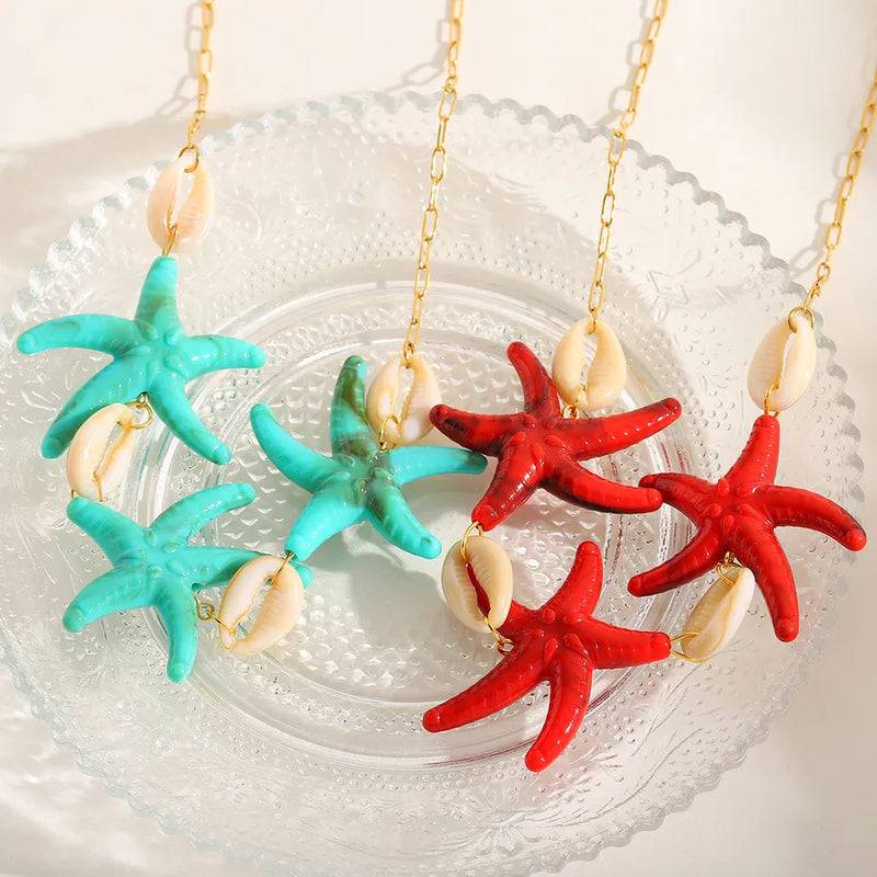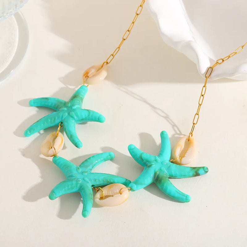 Wholesale Jewelry Casual Exaggerated Beach Starfish Conch 304 Stainless Steel 18K Gold Plated Plating Paperclip Chain Multi Charms Necklace