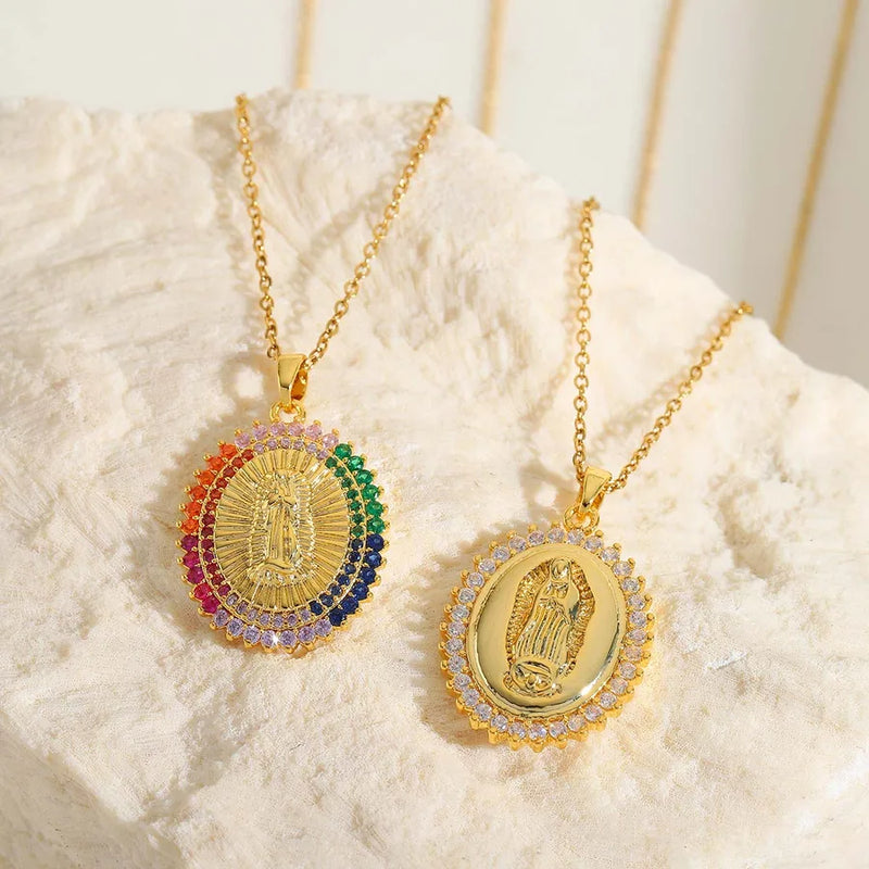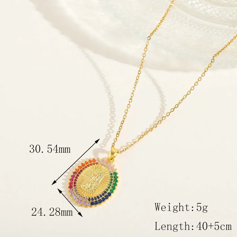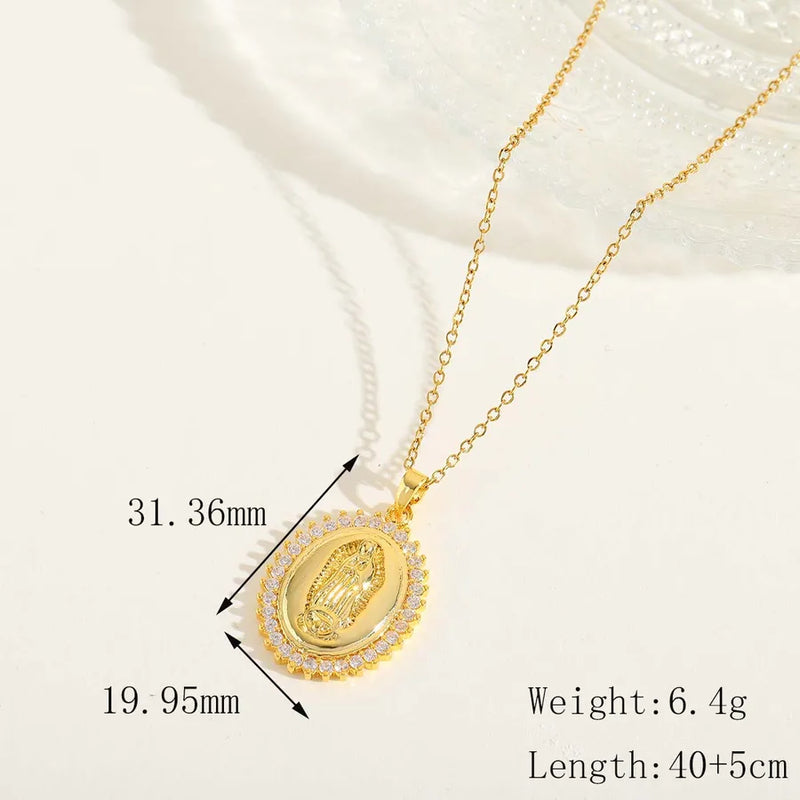 Wholesale Jewelry Casual Religion Commute Round Goddess 304 Stainless Steel Copper Zircon Imitation Gold Plating Inlay cable chain Pendant Necklace