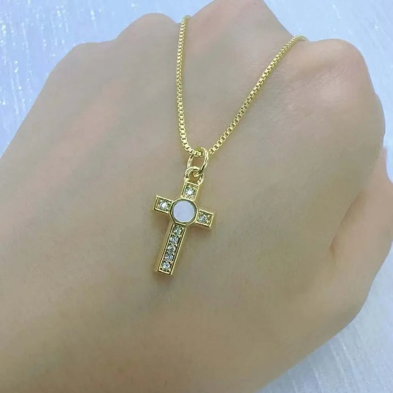 Wholesale Jewelry Casual Romantic Classic Style Cross Circle Copper Acrylic Zircon 18K Gold Plated Inlay box chain Pendant Necklace