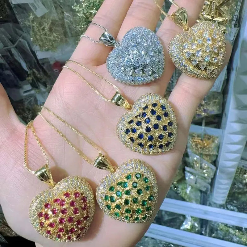Wholesale Jewelry Casual Romantic Shiny Heart Shape Copper Zircon 18K Gold Plated Inlay box chain Pendant Necklace