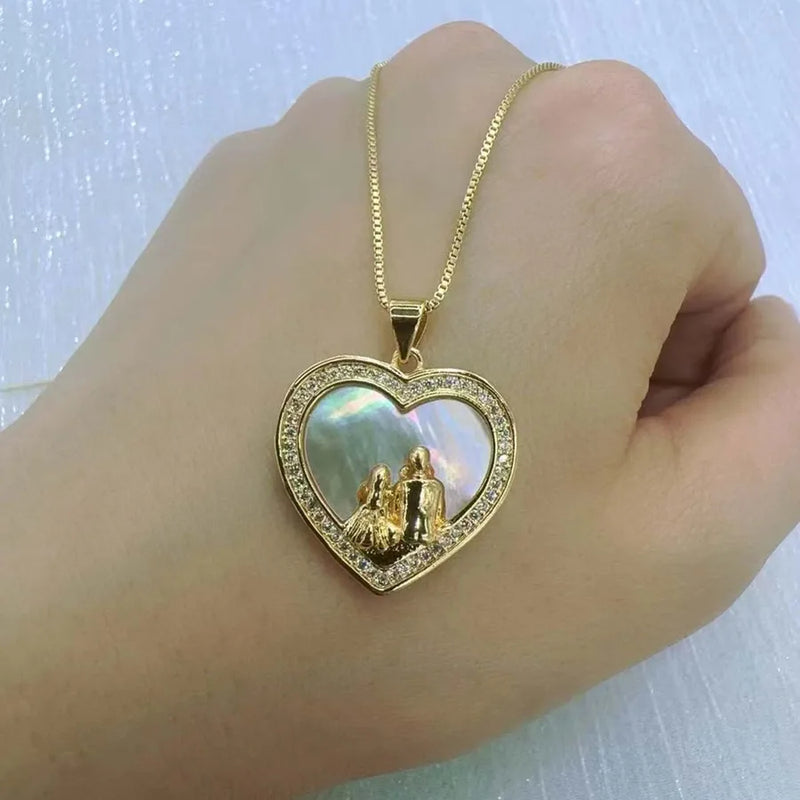 Wholesale Jewelry Casual Romantic Simple Style Human Heart Shape Copper Acrylic Zircon 18K Gold Plated Inlay box chain Pendant Necklace