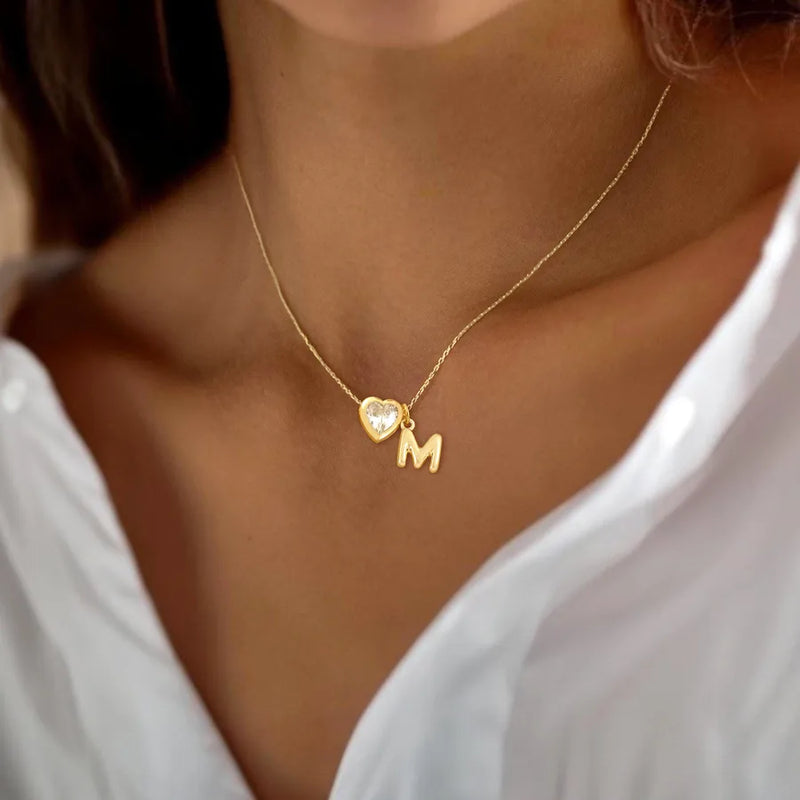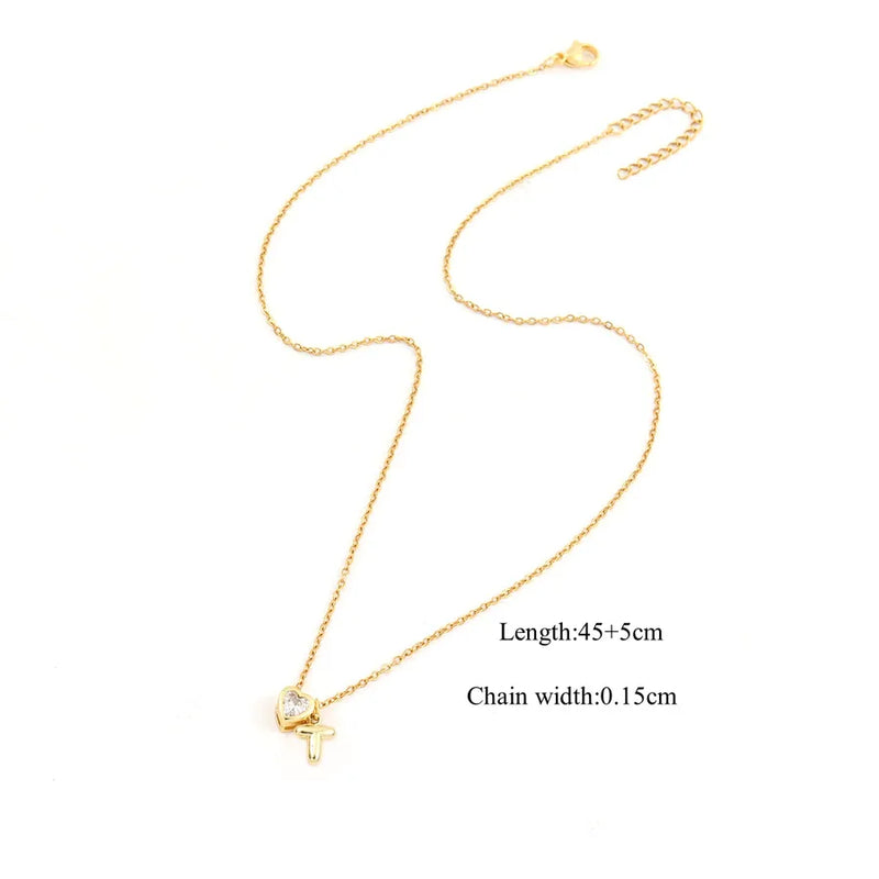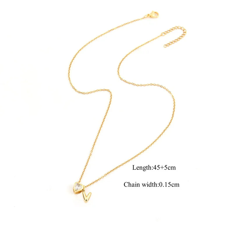 Wholesale Jewelry Casual Simple Style Letter Heart Shape 201 Stainless Steel Artificial Crystal Copper cable chain Pendant Necklace