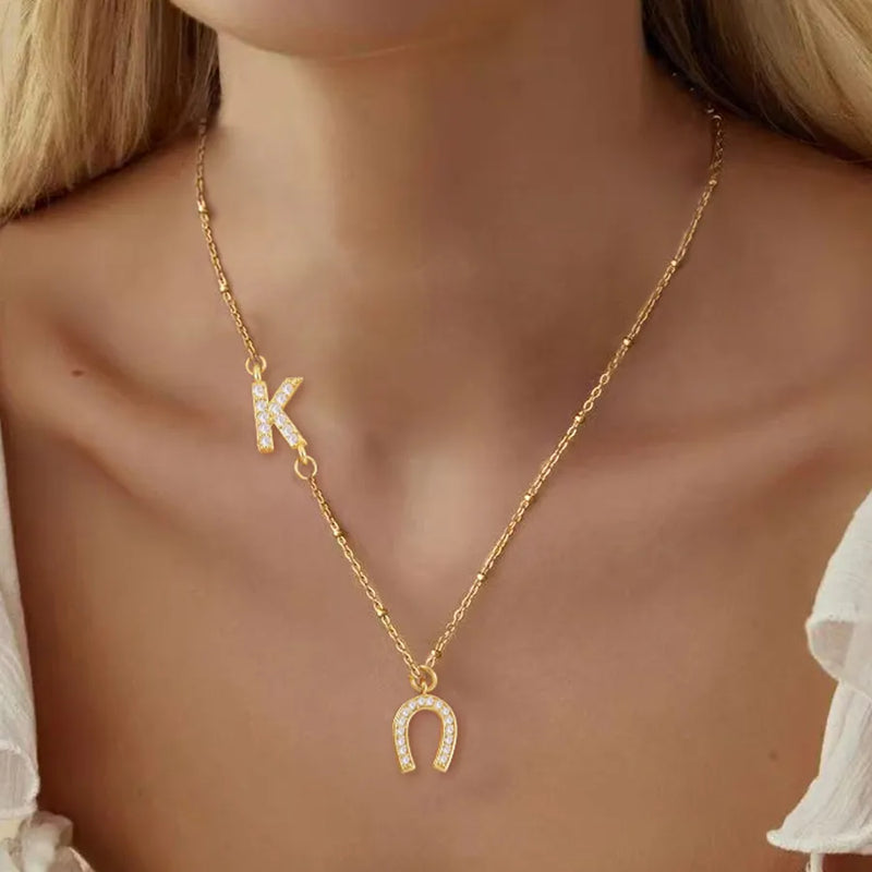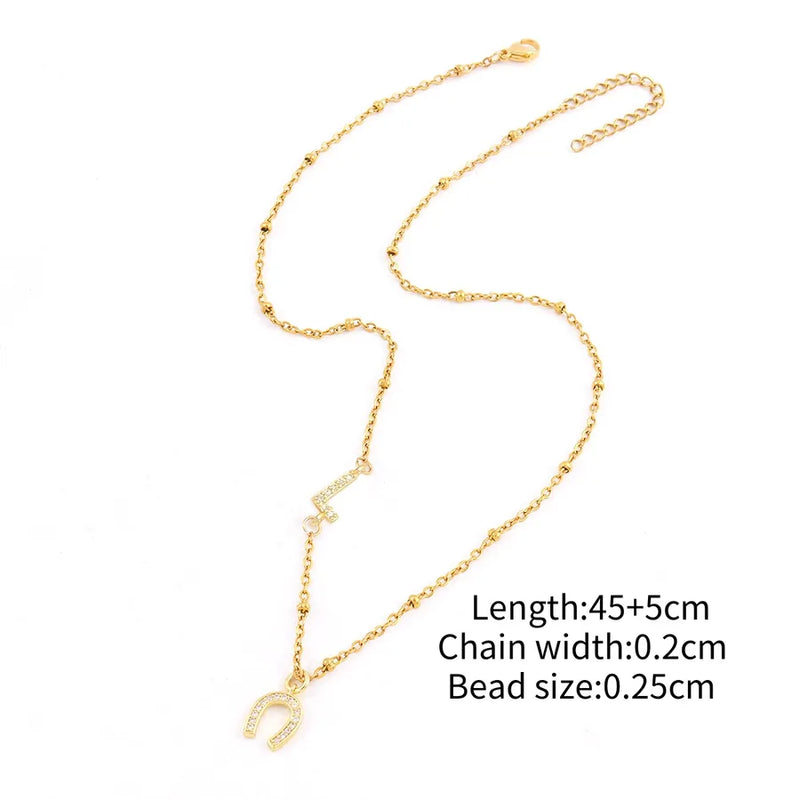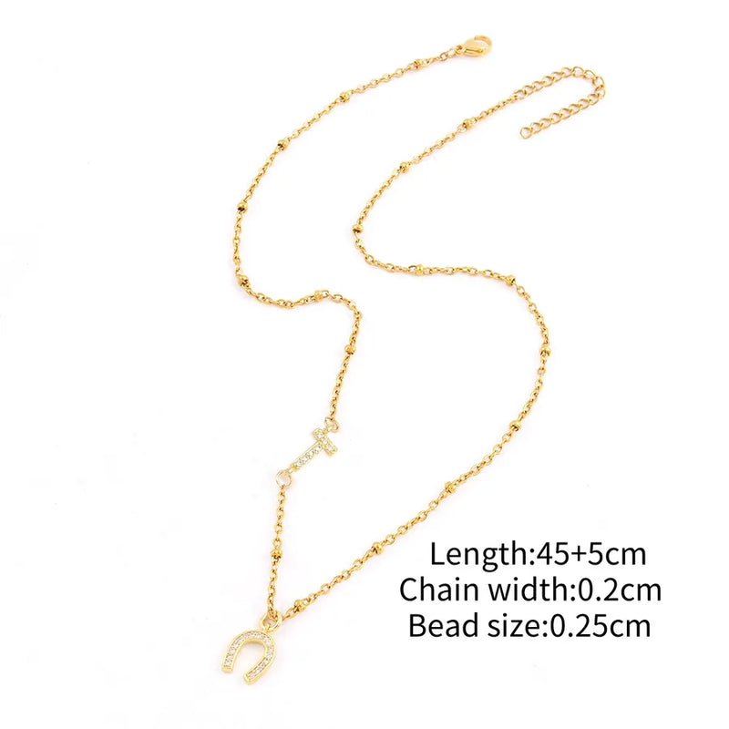 Wholesale Jewelry Casual Simple Style Letter Horseshoe 201 Stainless Steel Copper Zircon Beads Cross Chain Pendant Necklace